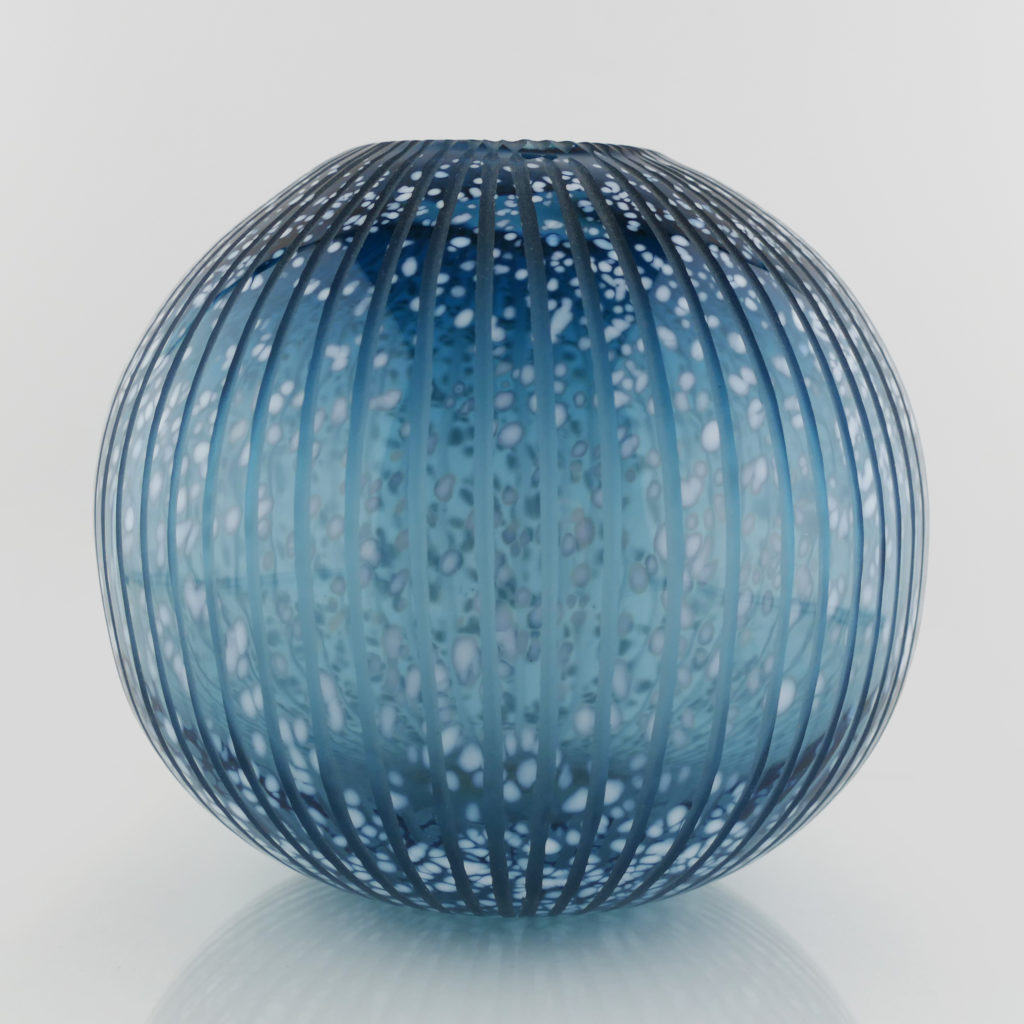 Translucide, Vase en verre soufflé bouche, formé à main levée Bleu Nuit, Effet frémissement marin