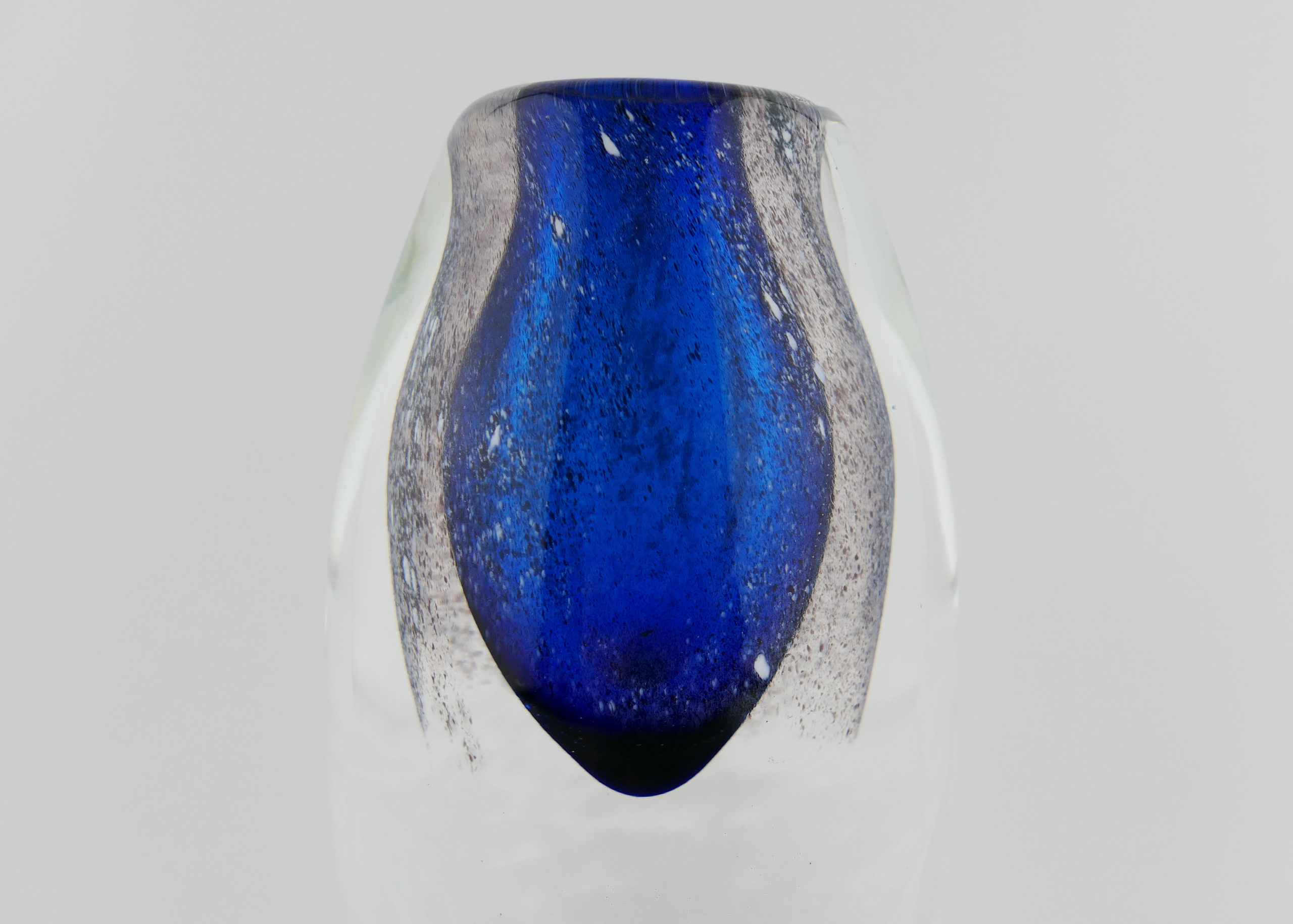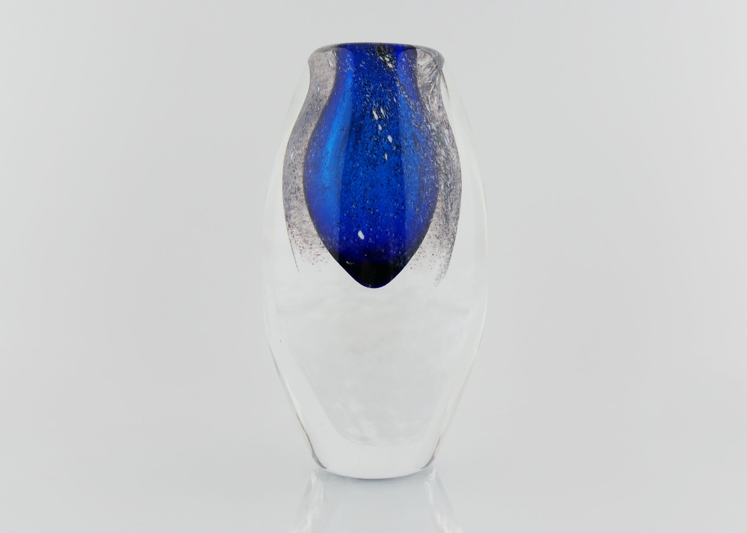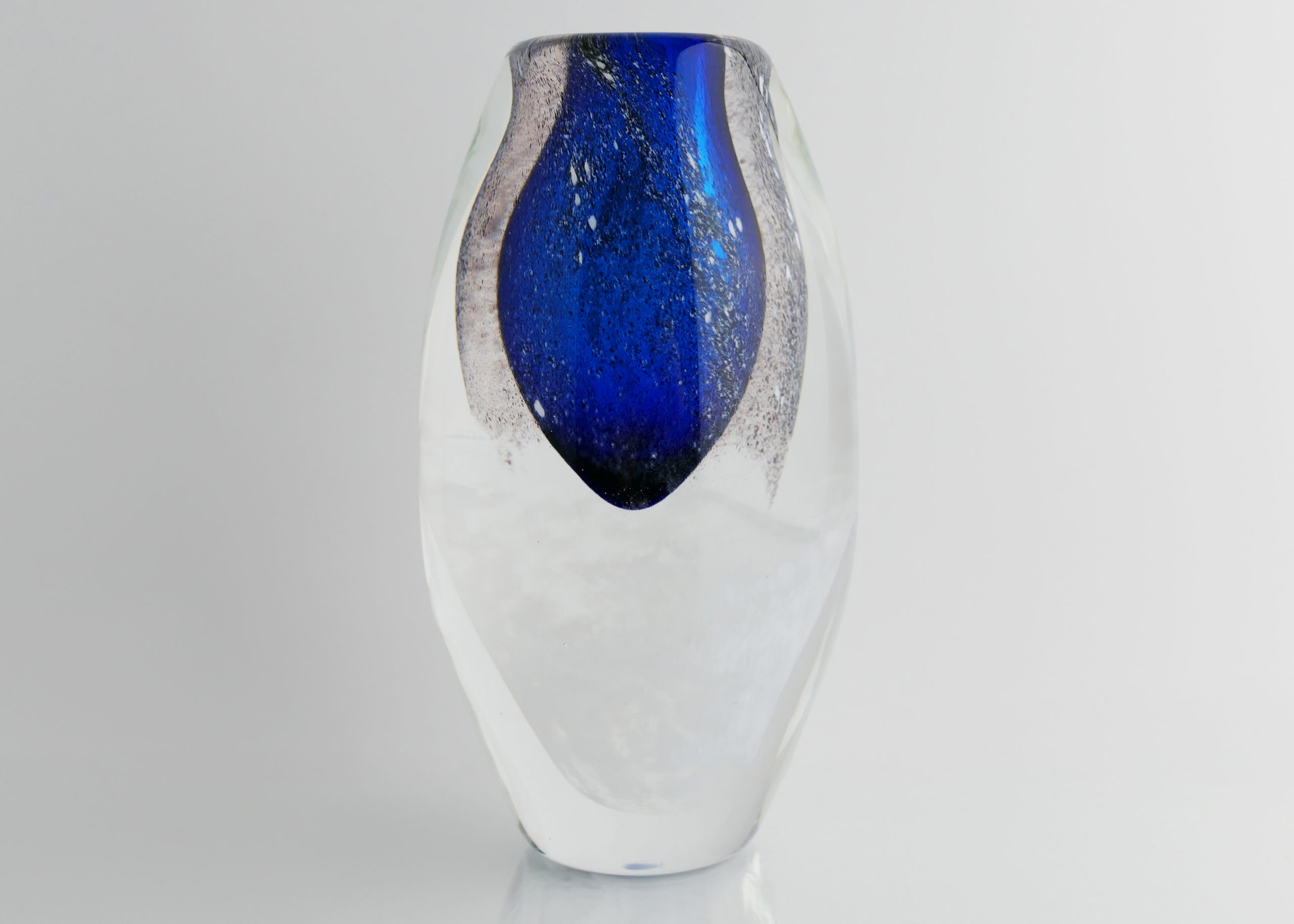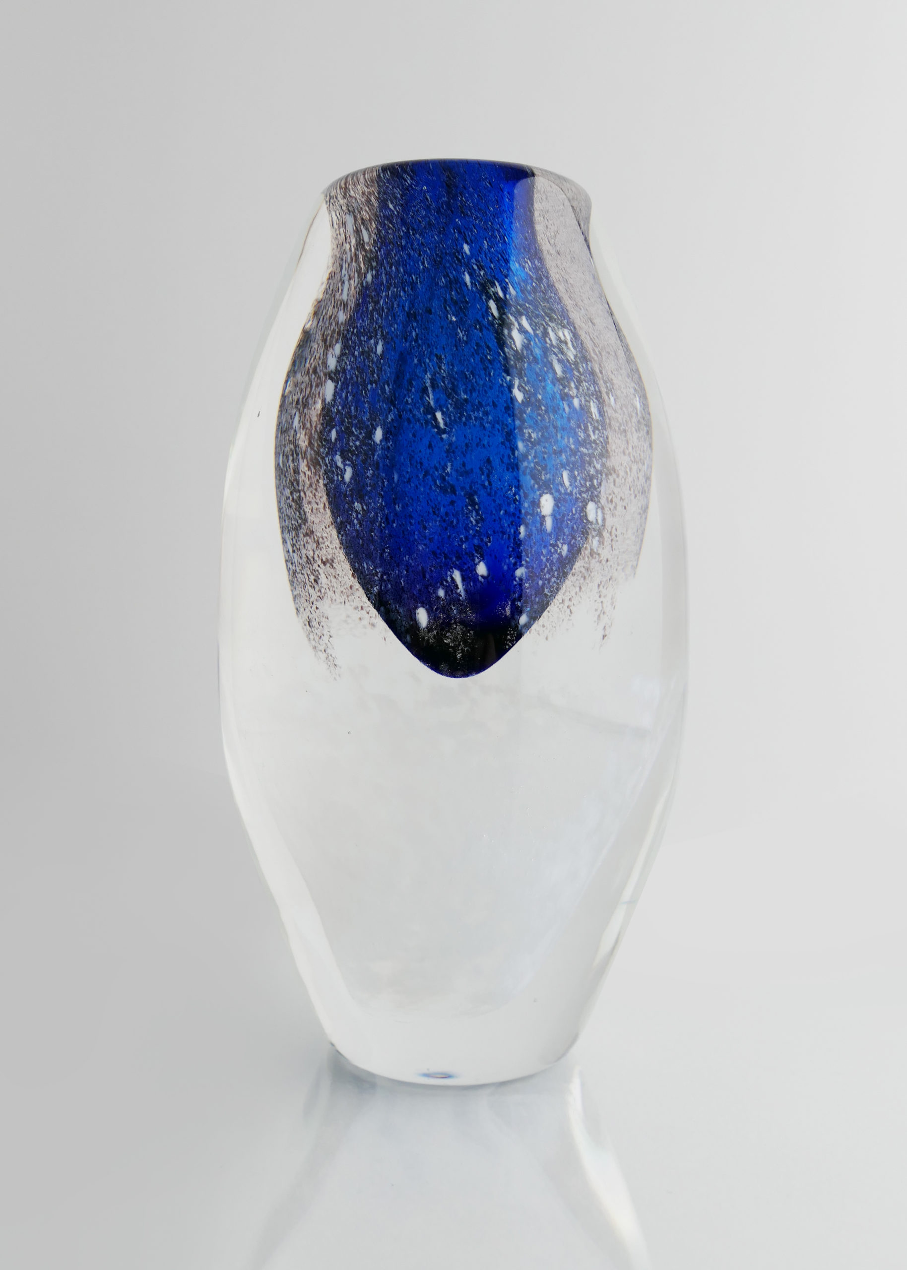 Berlingo Bleu Nuit, Soliflore en verre soufflé bouche, formé à main levée, Inclusion Feuille d’Argent