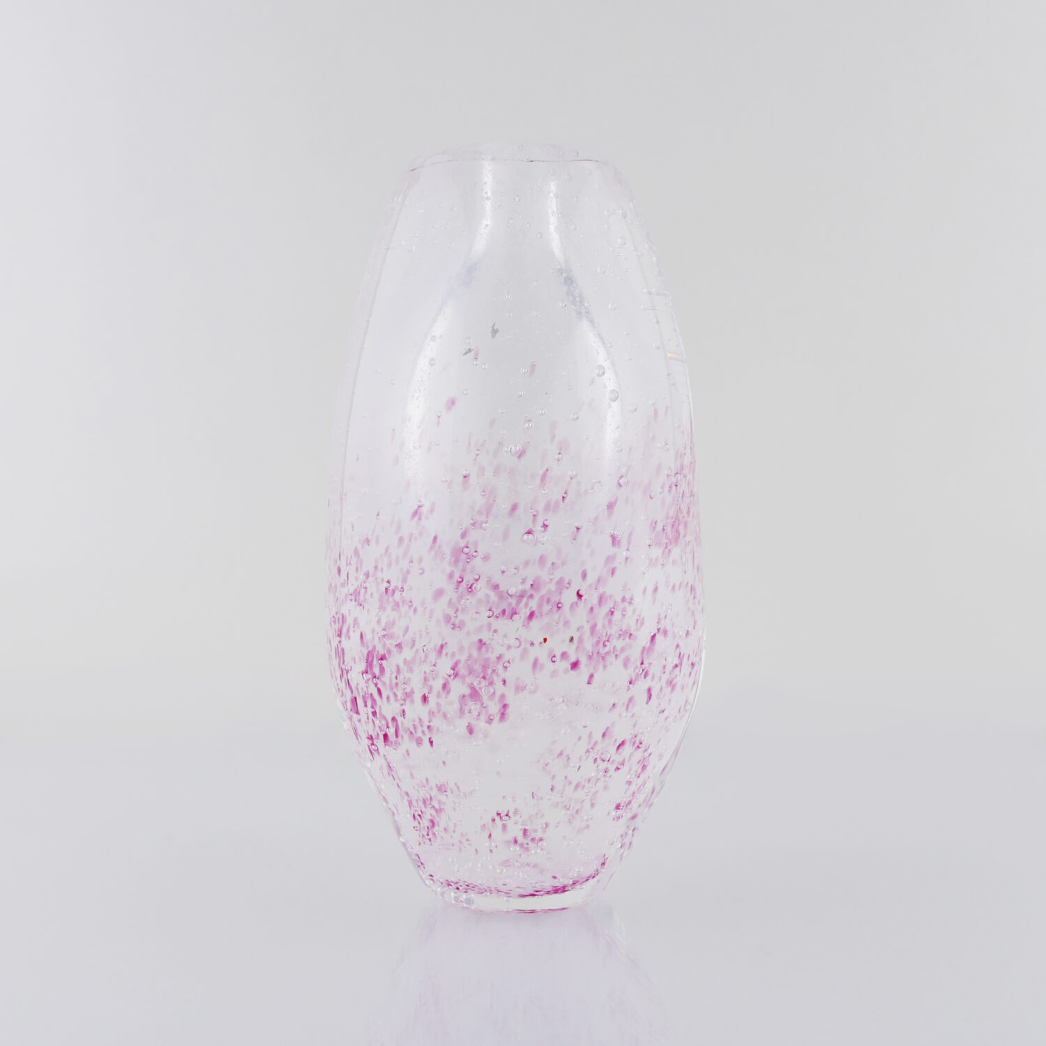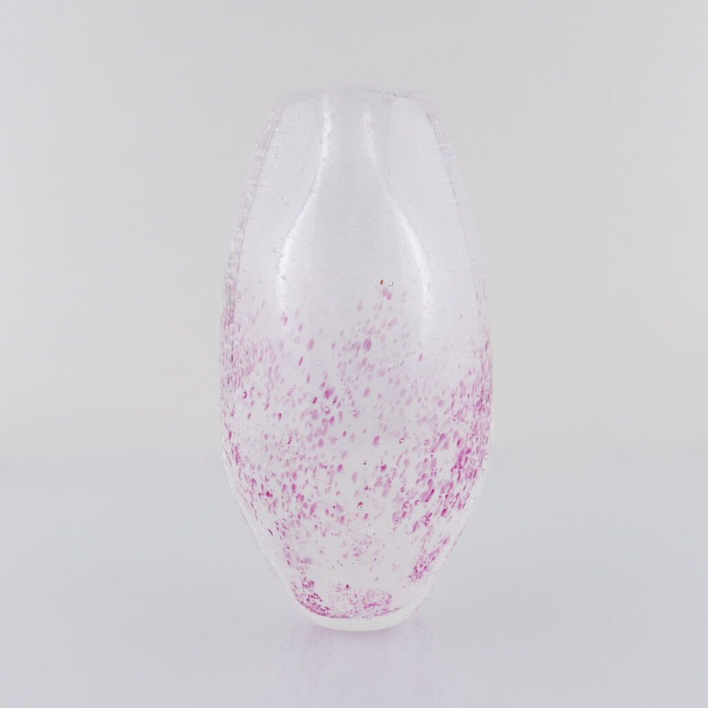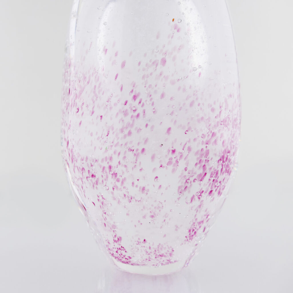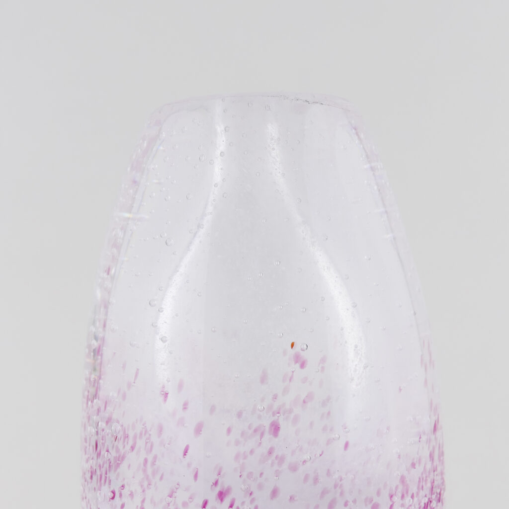 Berlingo Nacré et Rose, Mini Bulles, Soliflore en verre soufflé bouche, formé à main levée. Effet de Transparence et de Profondeur