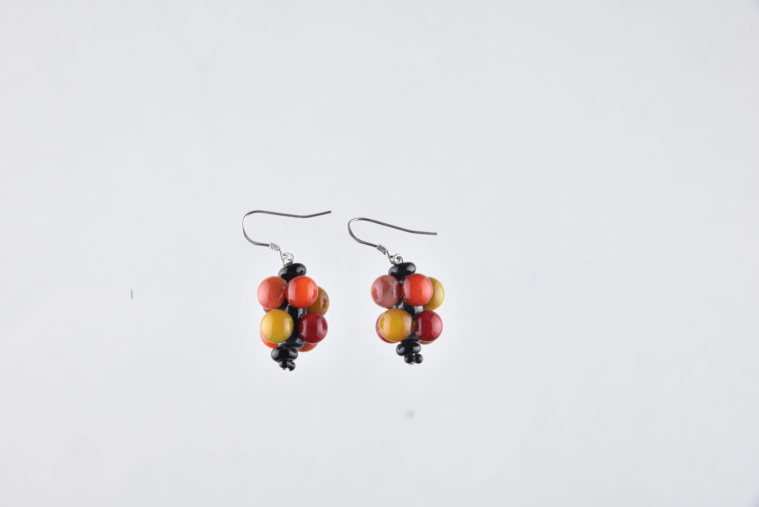 Boucles d’oreille « Molécule » perles en Cristal de Murano Rouge, Moutarde, Corail, Orange