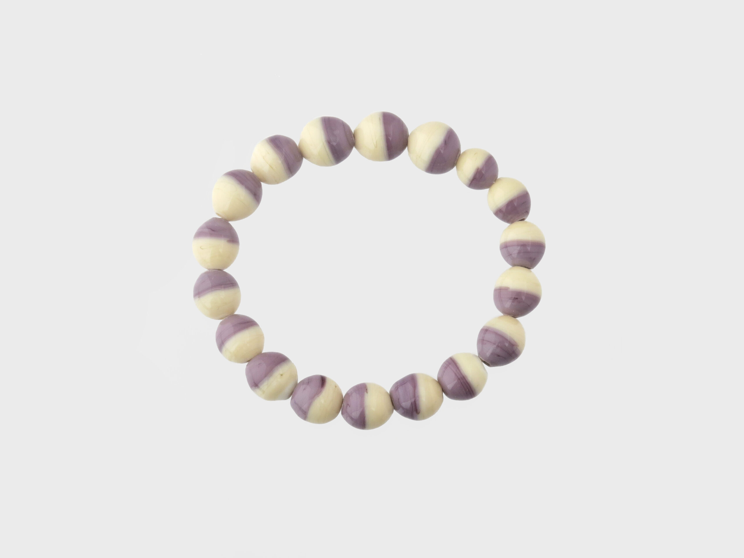 Bracelet Bicolore perles en Cristal de Murano couleur Ivoire et Mauve