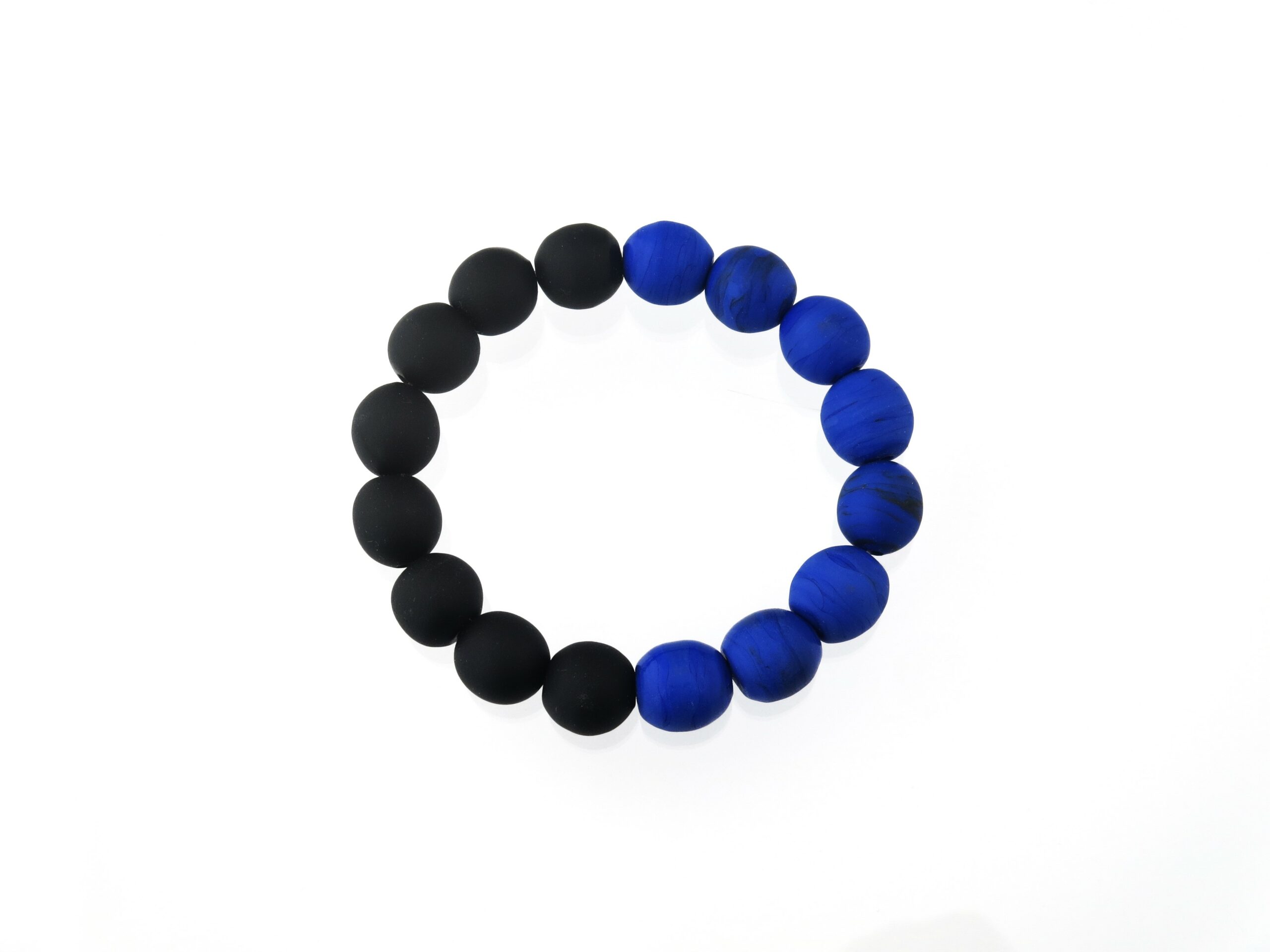 Bracelet perles en Cristal de Murano, Noir et Bleu Mate