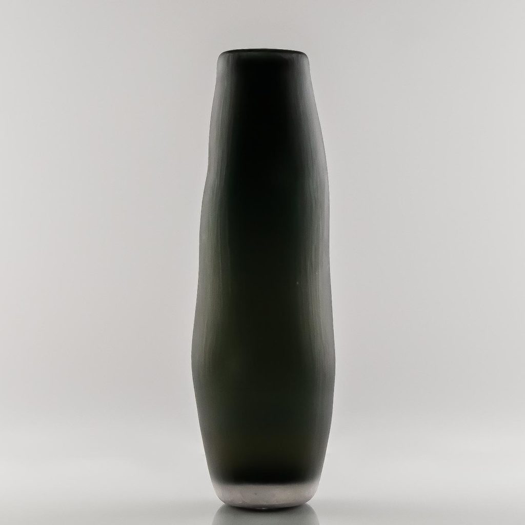 Translucide Horizon, Vase en verre soufflé bouche, formé à main levée couleur Anthracite, Effet Transparent et Satiné