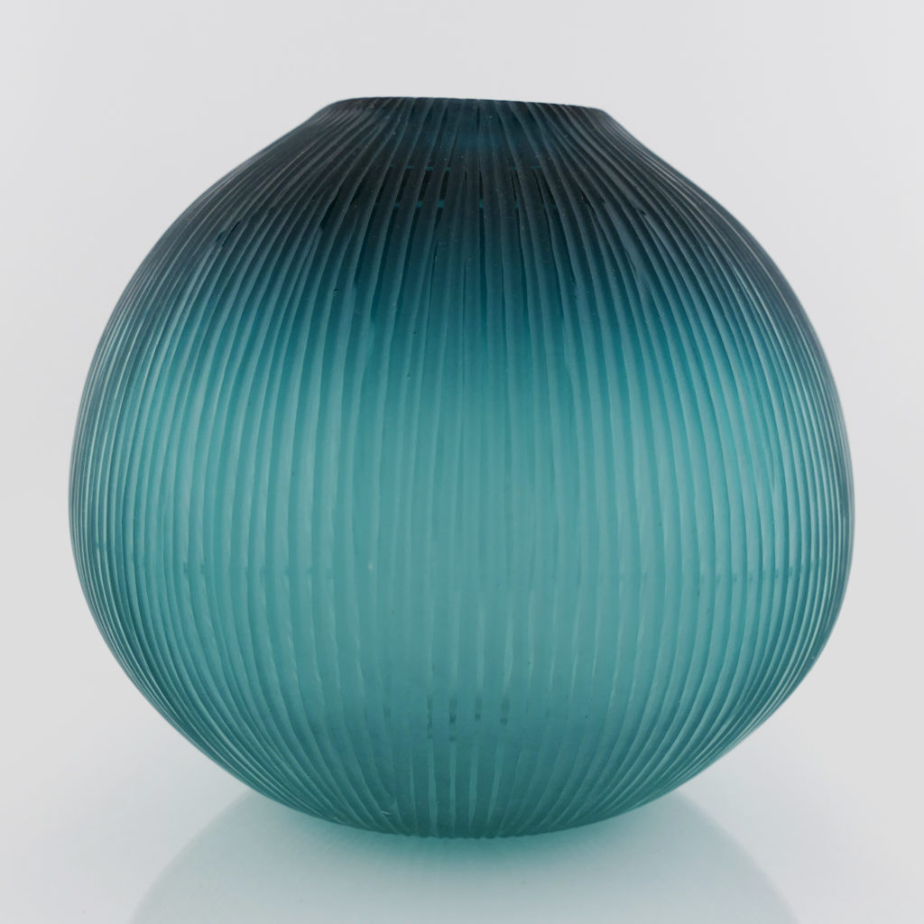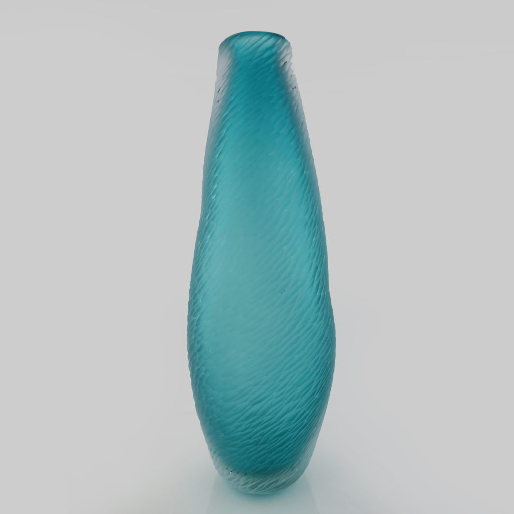 Translucide, Vase en verre soufflé bouche, formé à main levée Bleu Océan, Effet écaille satiné