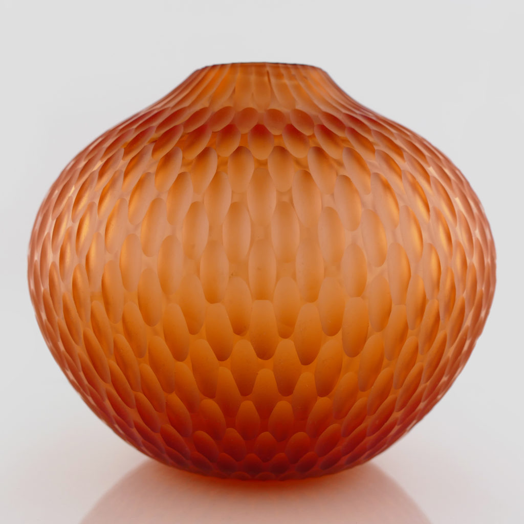 Translucide, Vase en verre soufflé bouche, formé à main levée, de couleur Aurore. Effet Grain de blé Satiné
