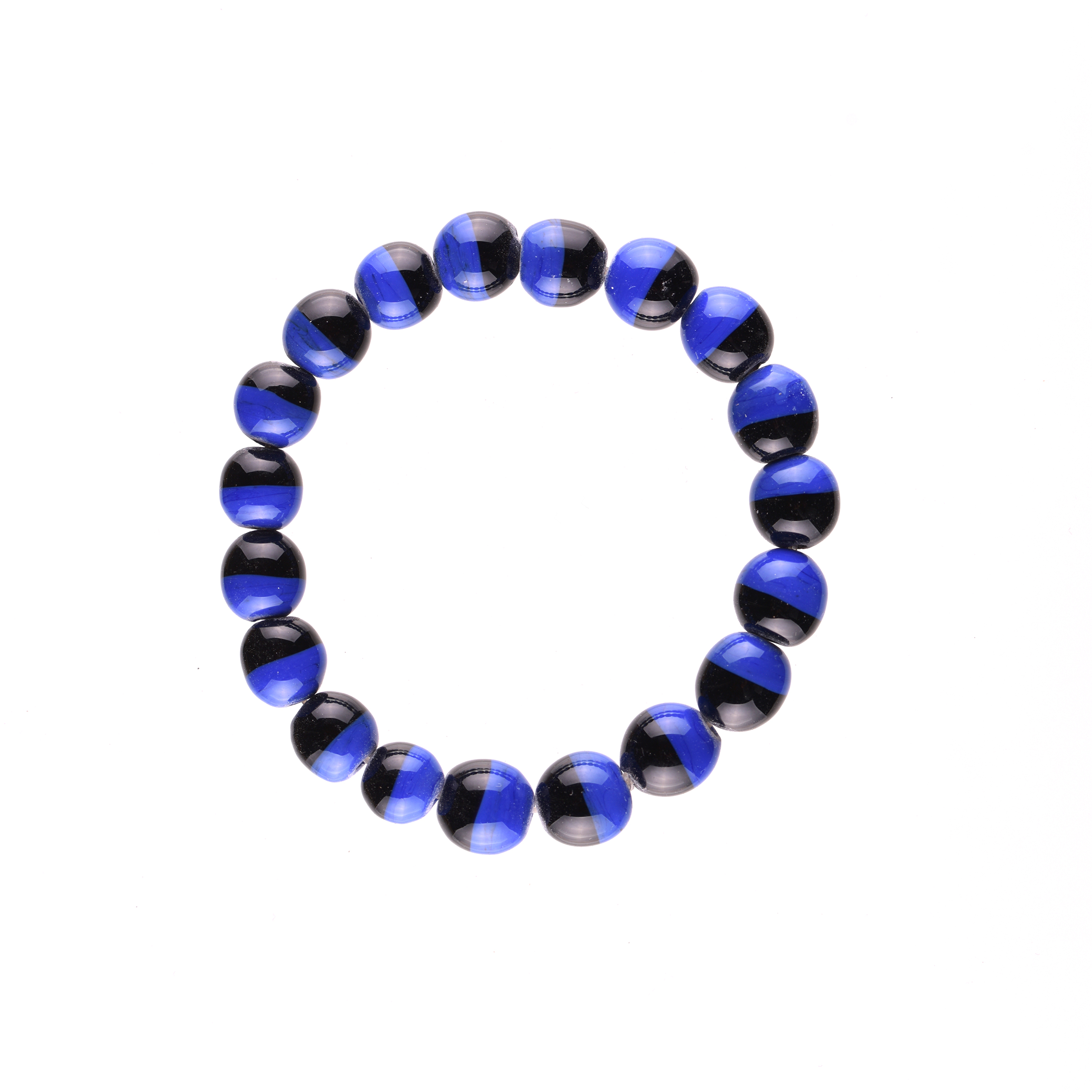 Bracelet perles rondes en Cristal de Murano Bleu, Zébré Noir