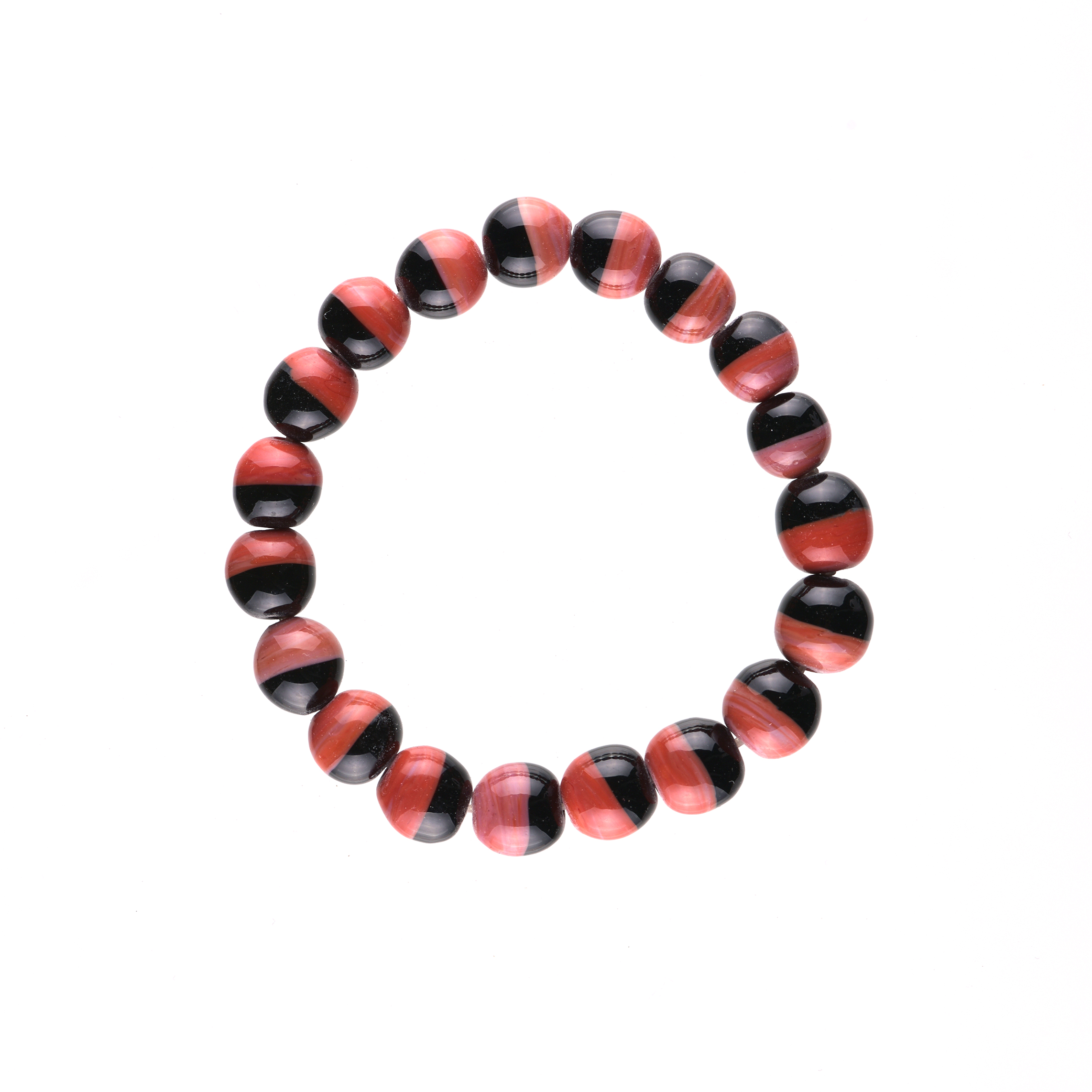 Bracelet perles rondes en Cristal de Murano Rouge, Zébré Noir
