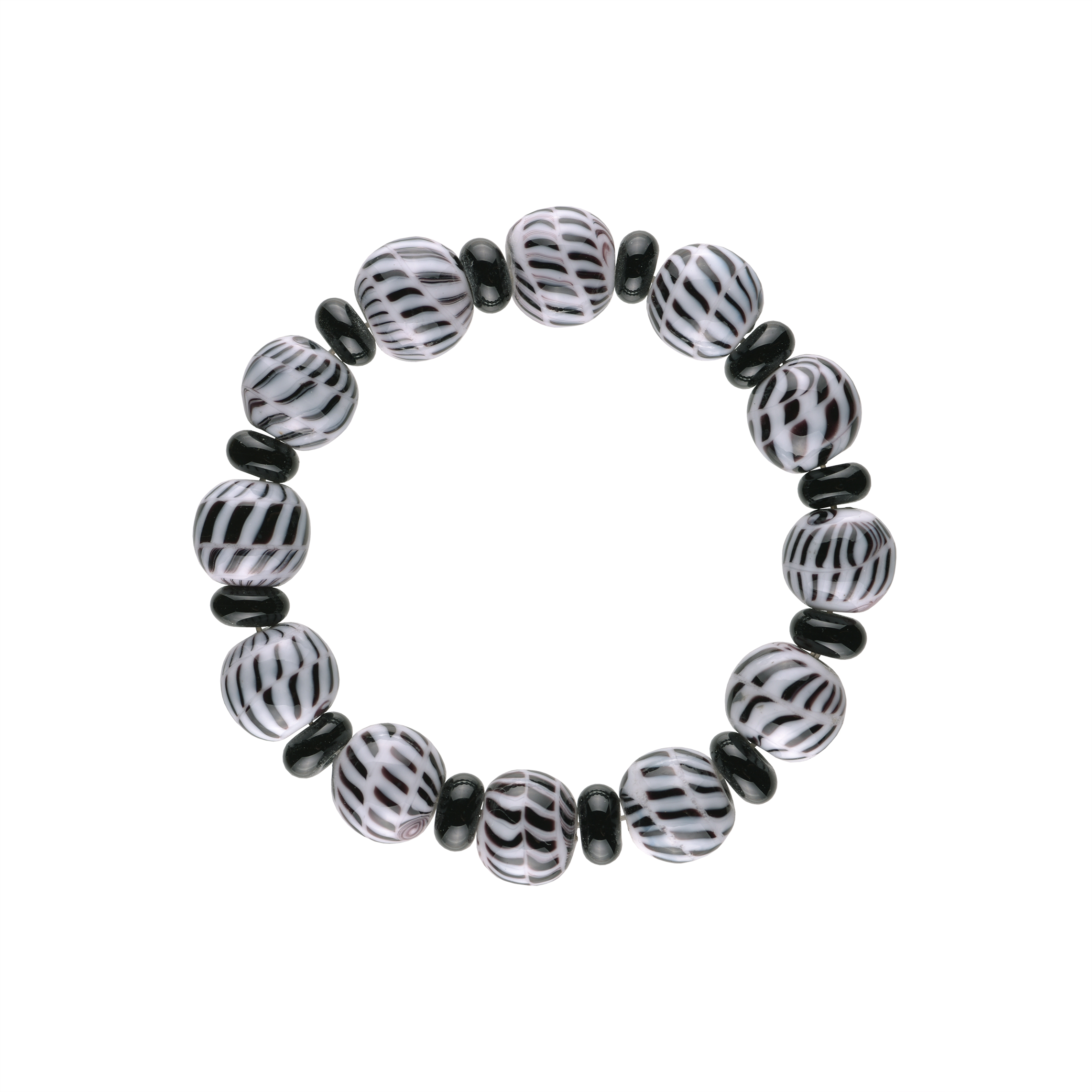 Bracelet perles en Cristal de Murano Noir décors peigné Blanc