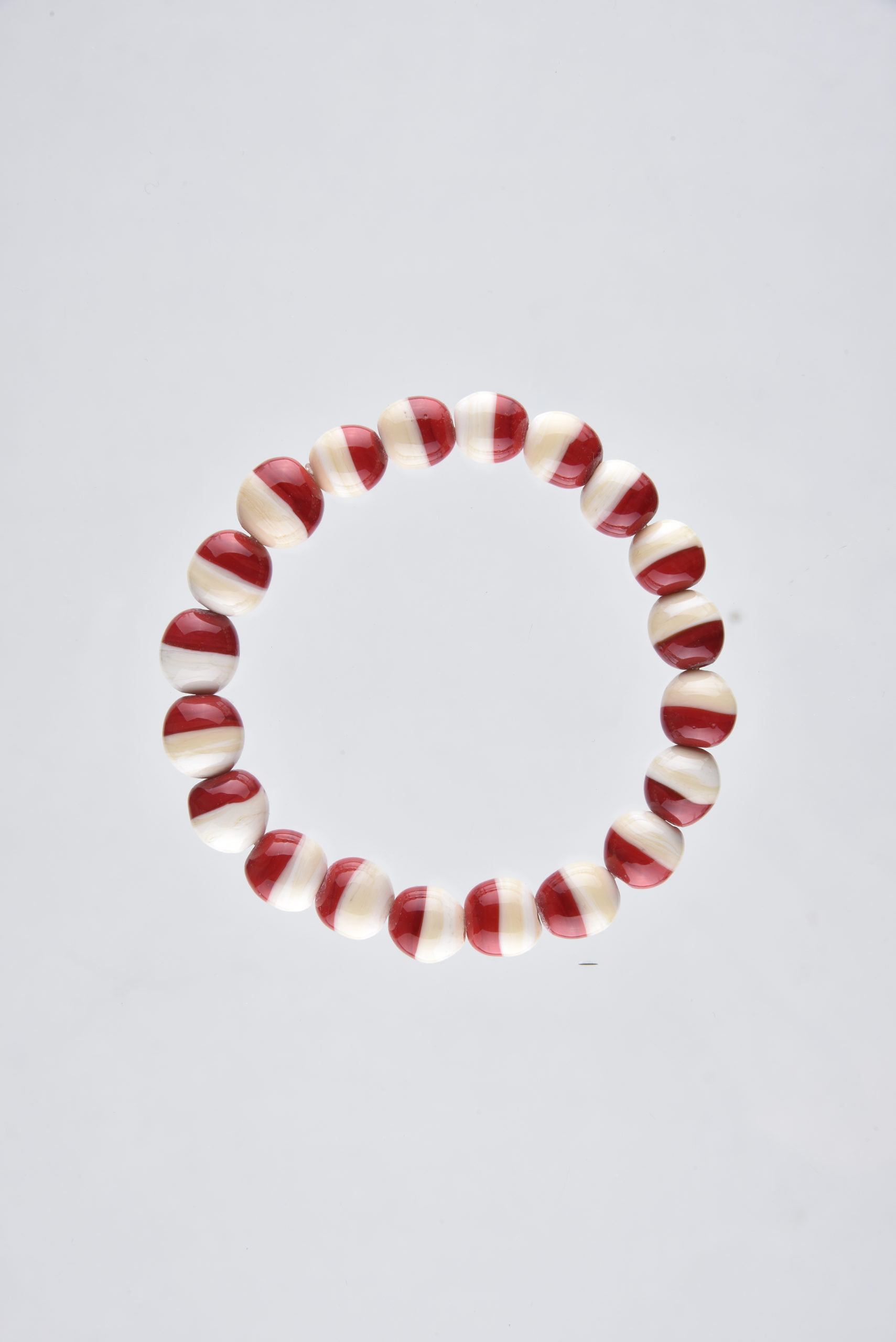 Bracelet perles rondes en Cristal de Murano Rouge, Zébré Noir