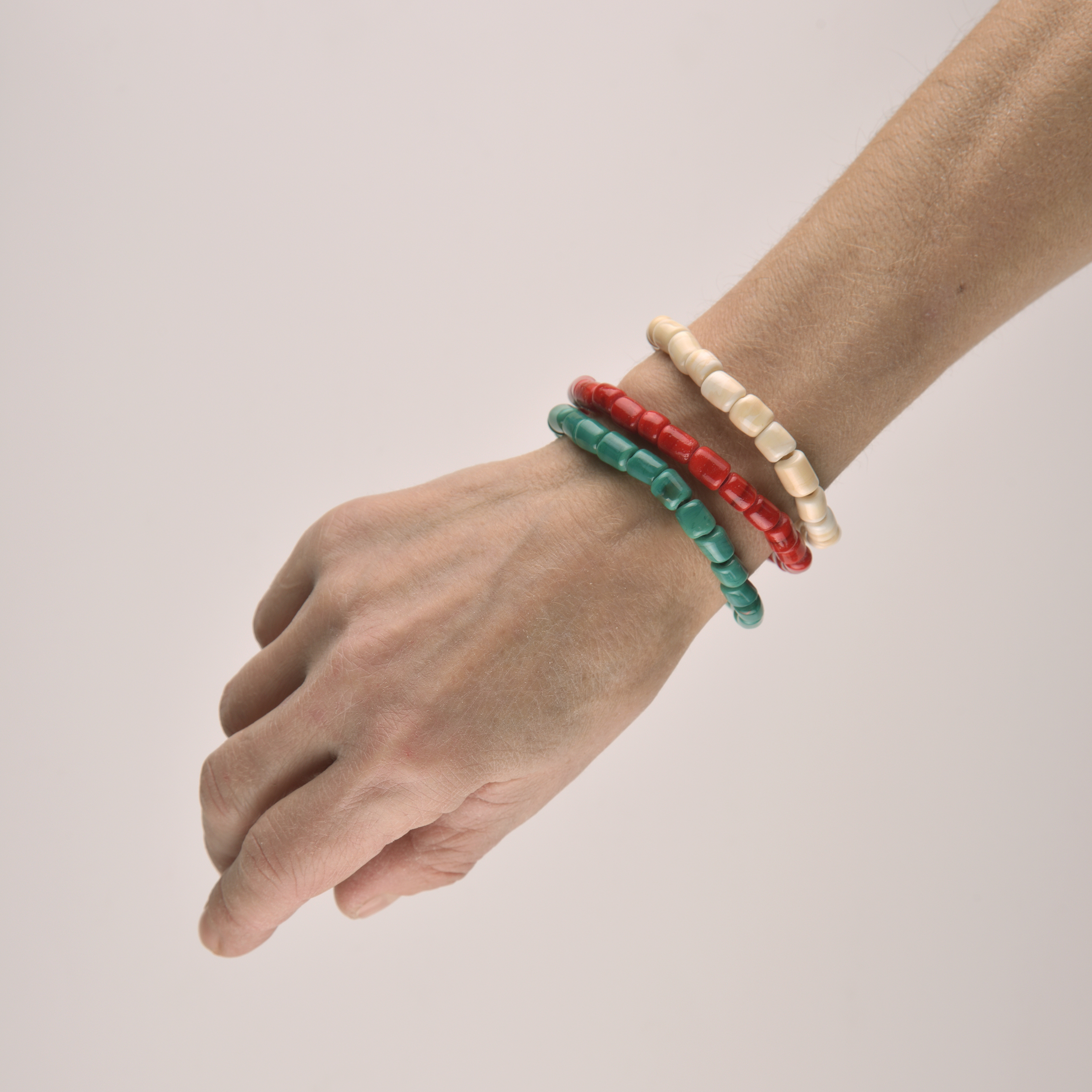 Bracelet perles en Cristal de Murano 3 couleurs Mates Vert canard, Ivoire et Noire