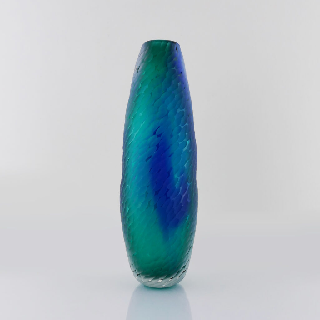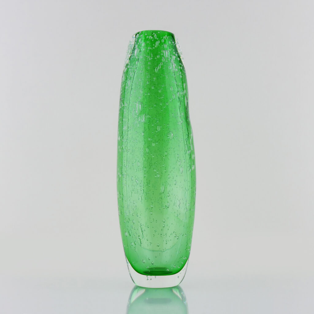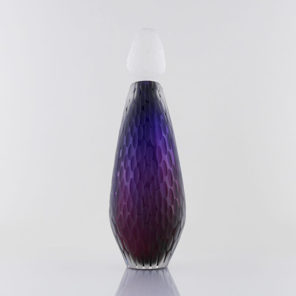 Cet objet unique en verre soufflé taillé au diamant dans la masse peut être utilisé comme vase et objet décoratif.