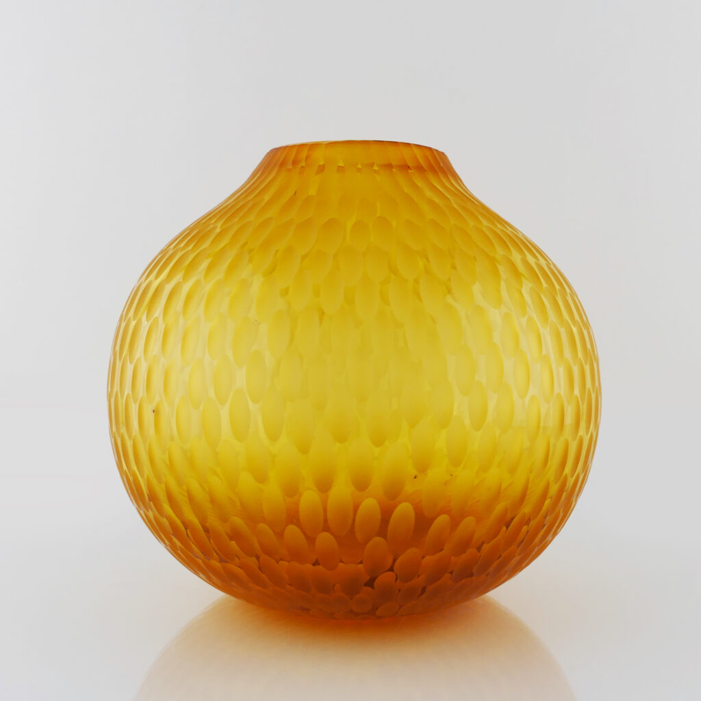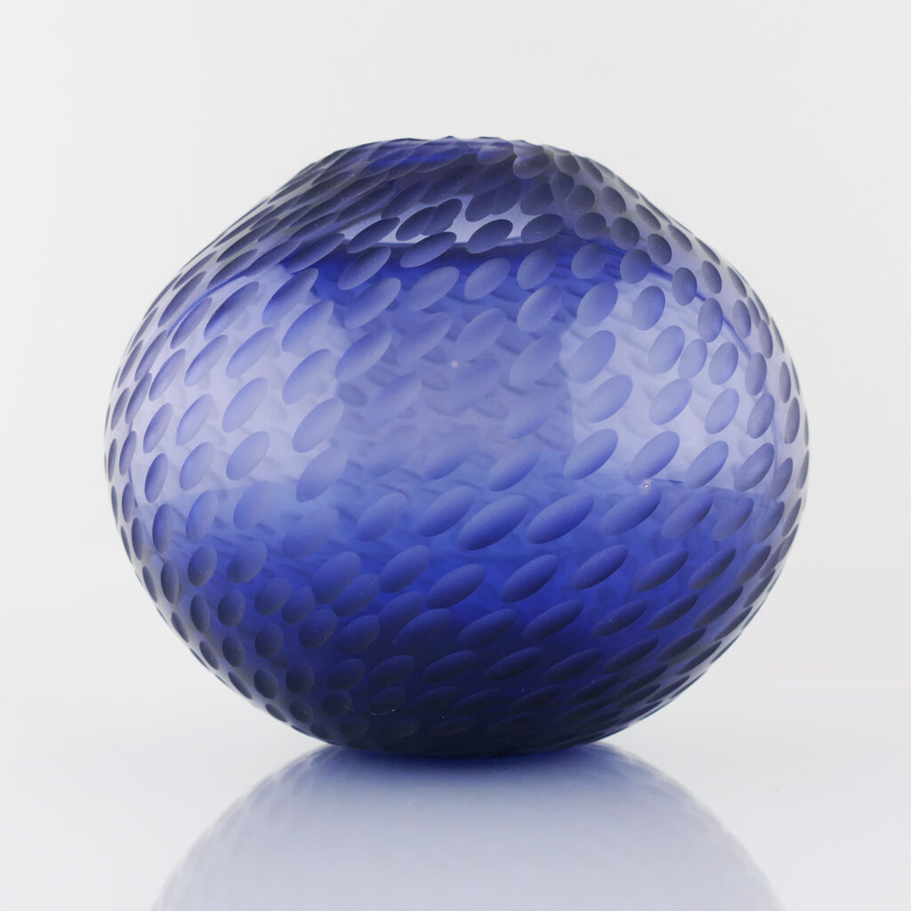 Cet objet unique en verre soufflé translucide et satiné peut être utilisé comme vase et objet décoratif.