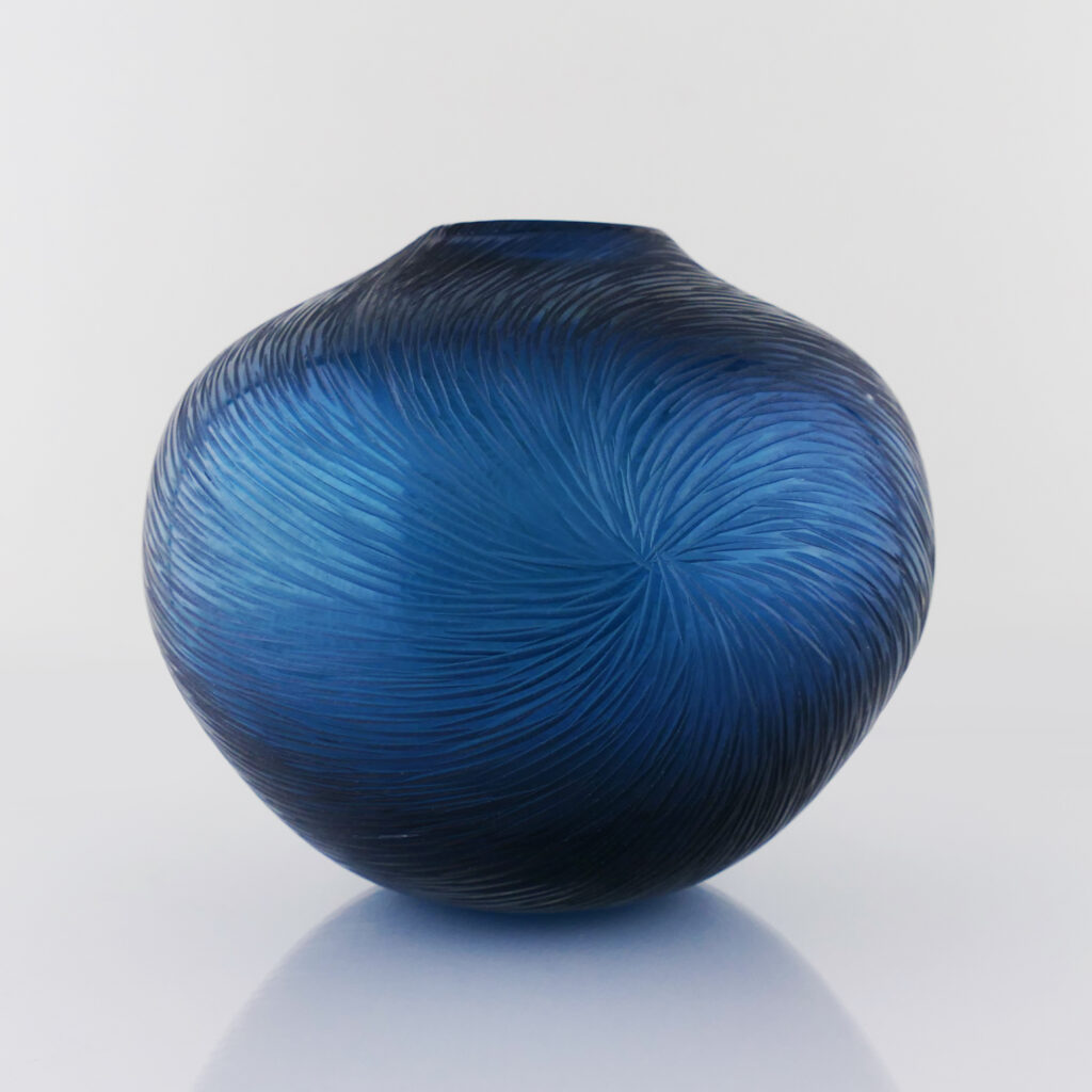 Je conçois chaque pièce et les souffle à la bouche à main levée en atelier de soufflage de verre, en France.