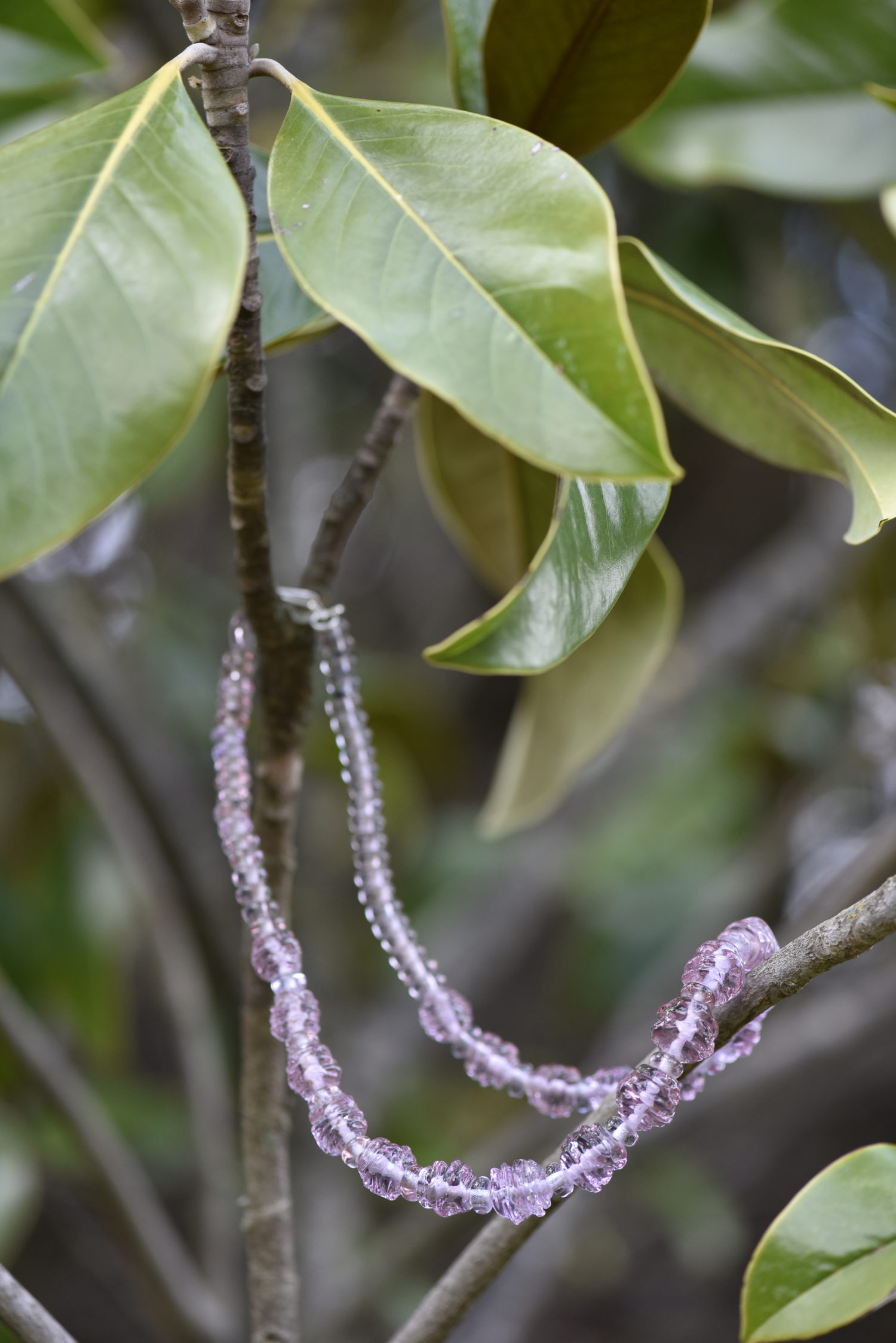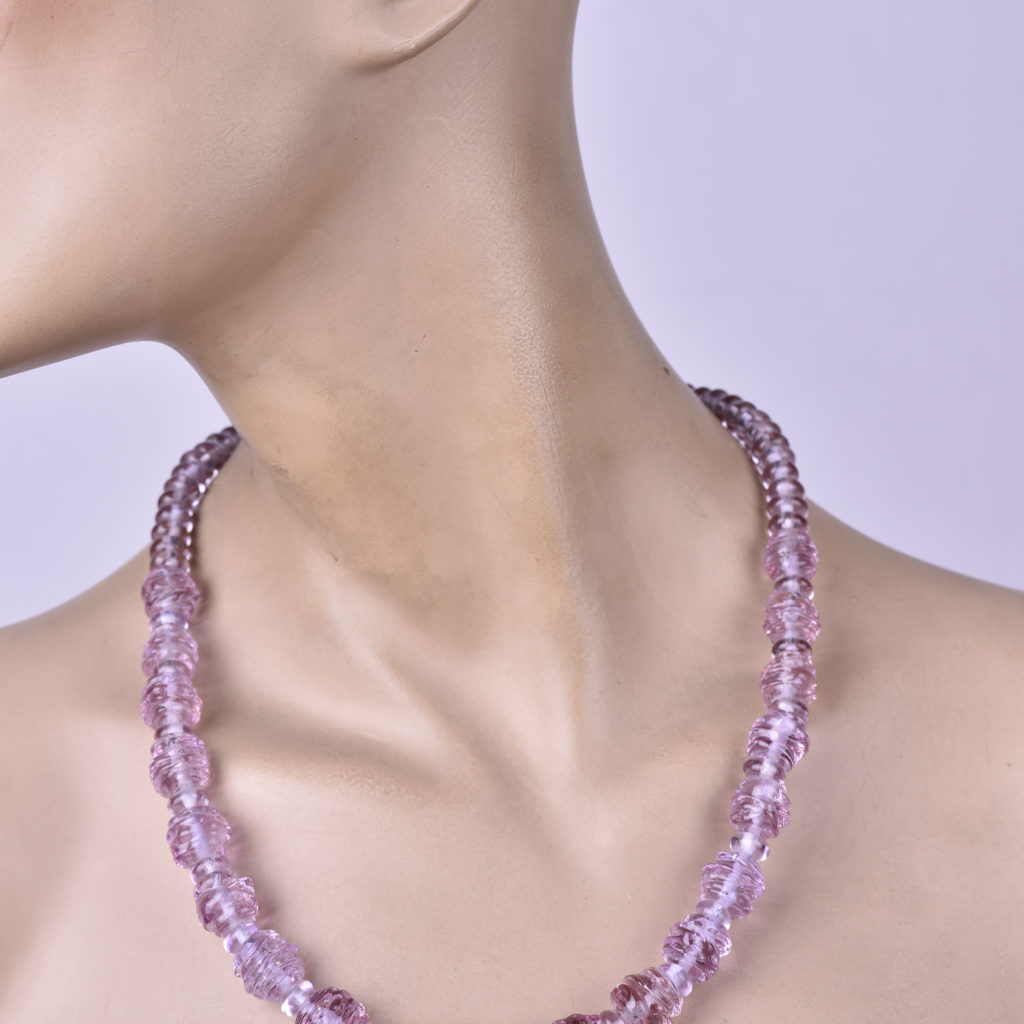 Ce collier délicat composé de perles en cristal de Murano, façonné à la main selon les techniques vénitiennes traditionnelles. Chaque perle est unique, filées au chalumeau pour créer des variations subtiles de teinte rose transparent. Le motif floral caractéristique confère une élégance intemporelle. Parfait pour sublimer une tenue quotidienne ou une occasion spéciale, ce collier incarne savoir-faire et créativité.