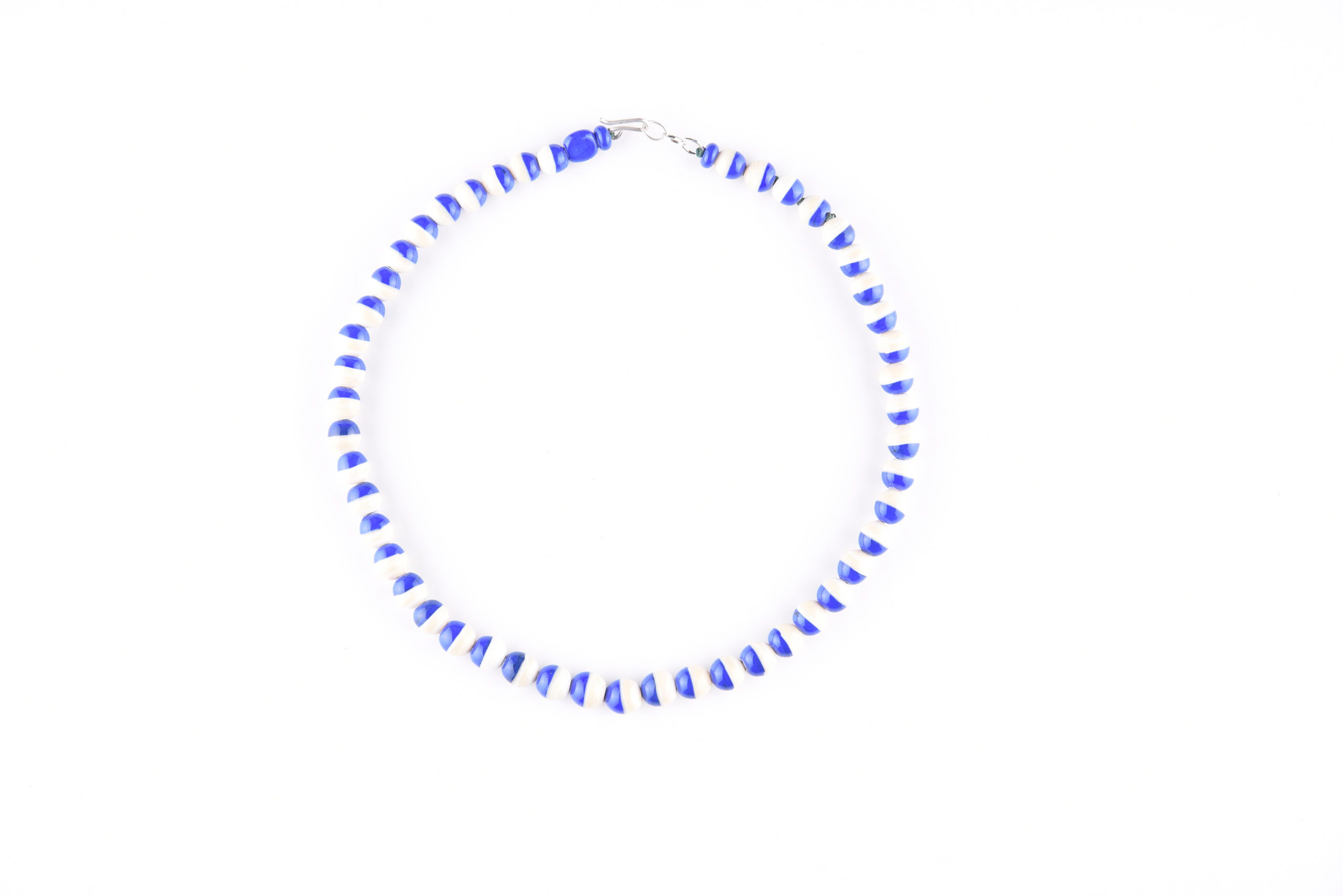 Collier perles rondes en Cristal de Murano Bicolore couleur Ivoire et Bleue