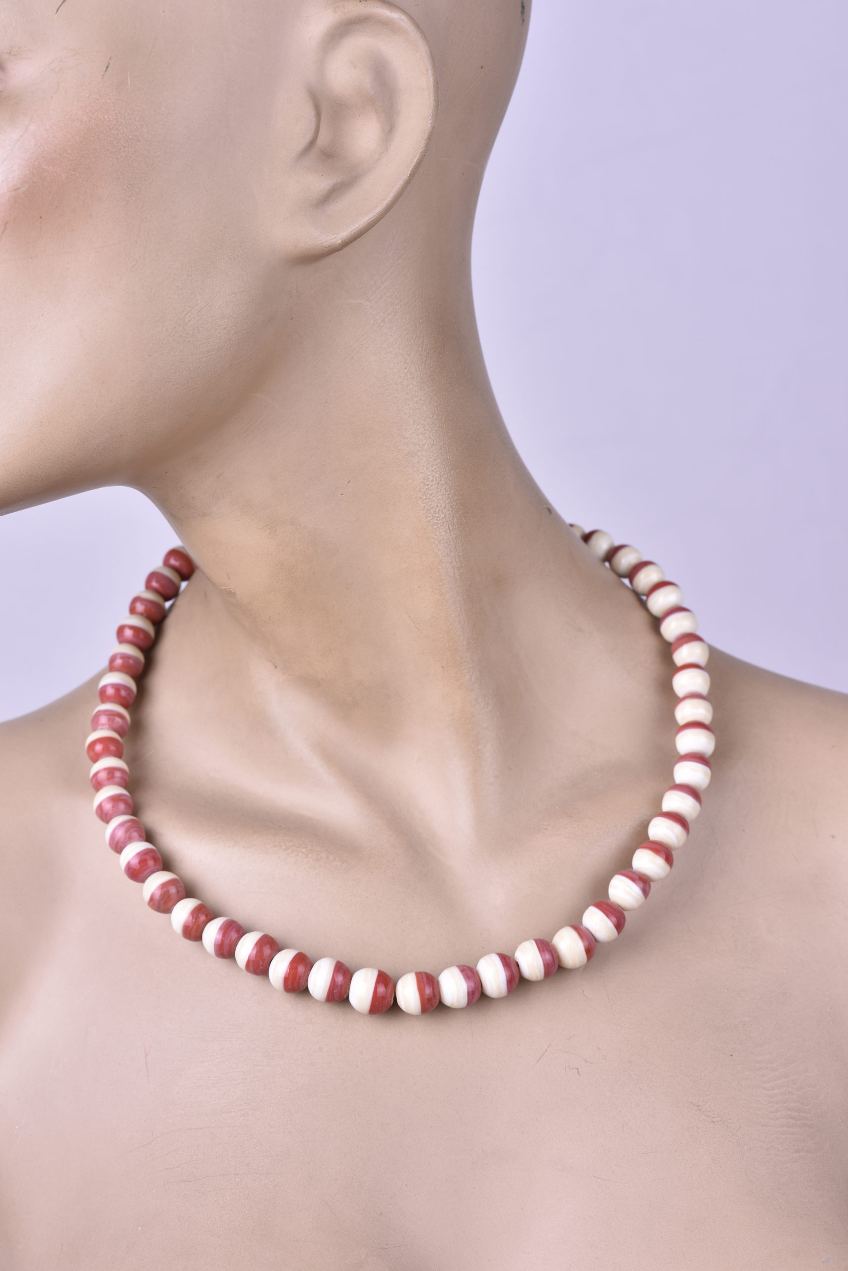 Collier perles rondes en Cristal de Murano Bicolore couleur Ivoire et Rouge