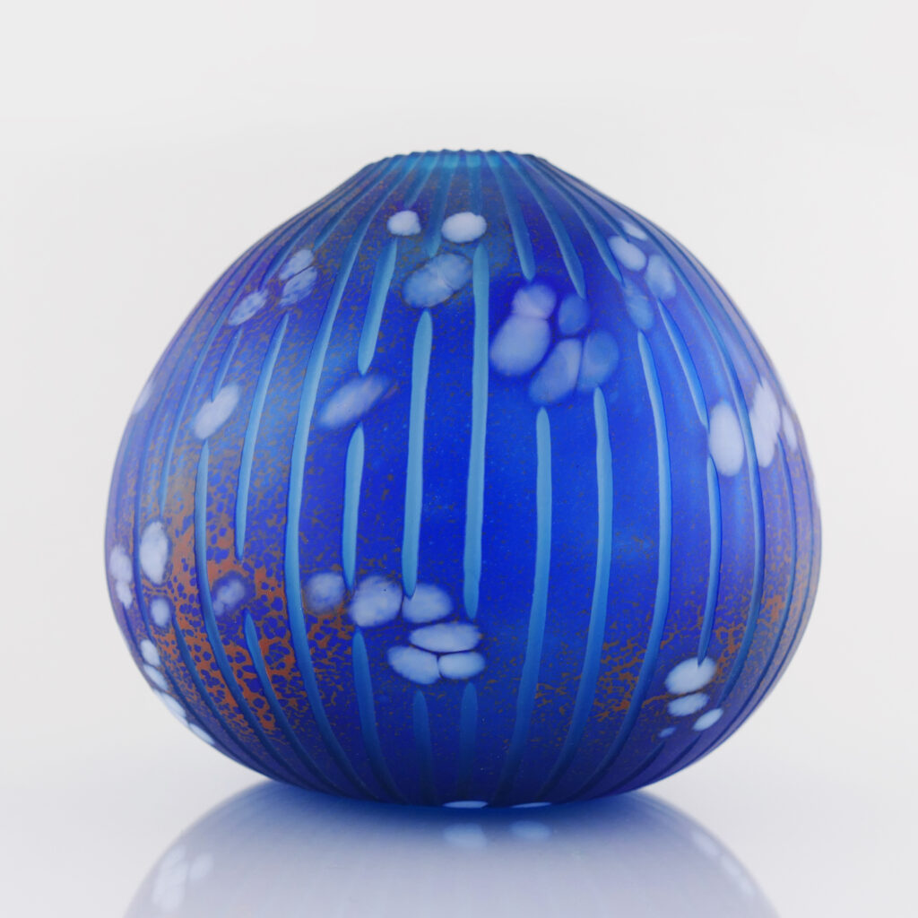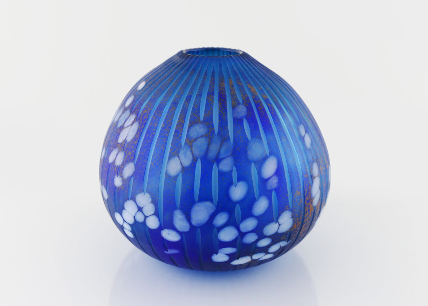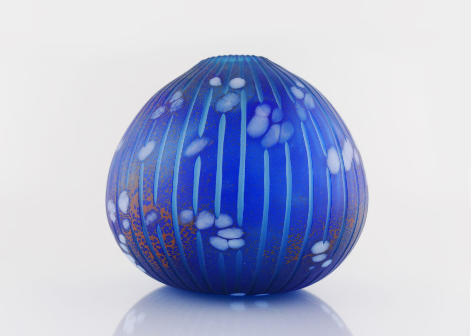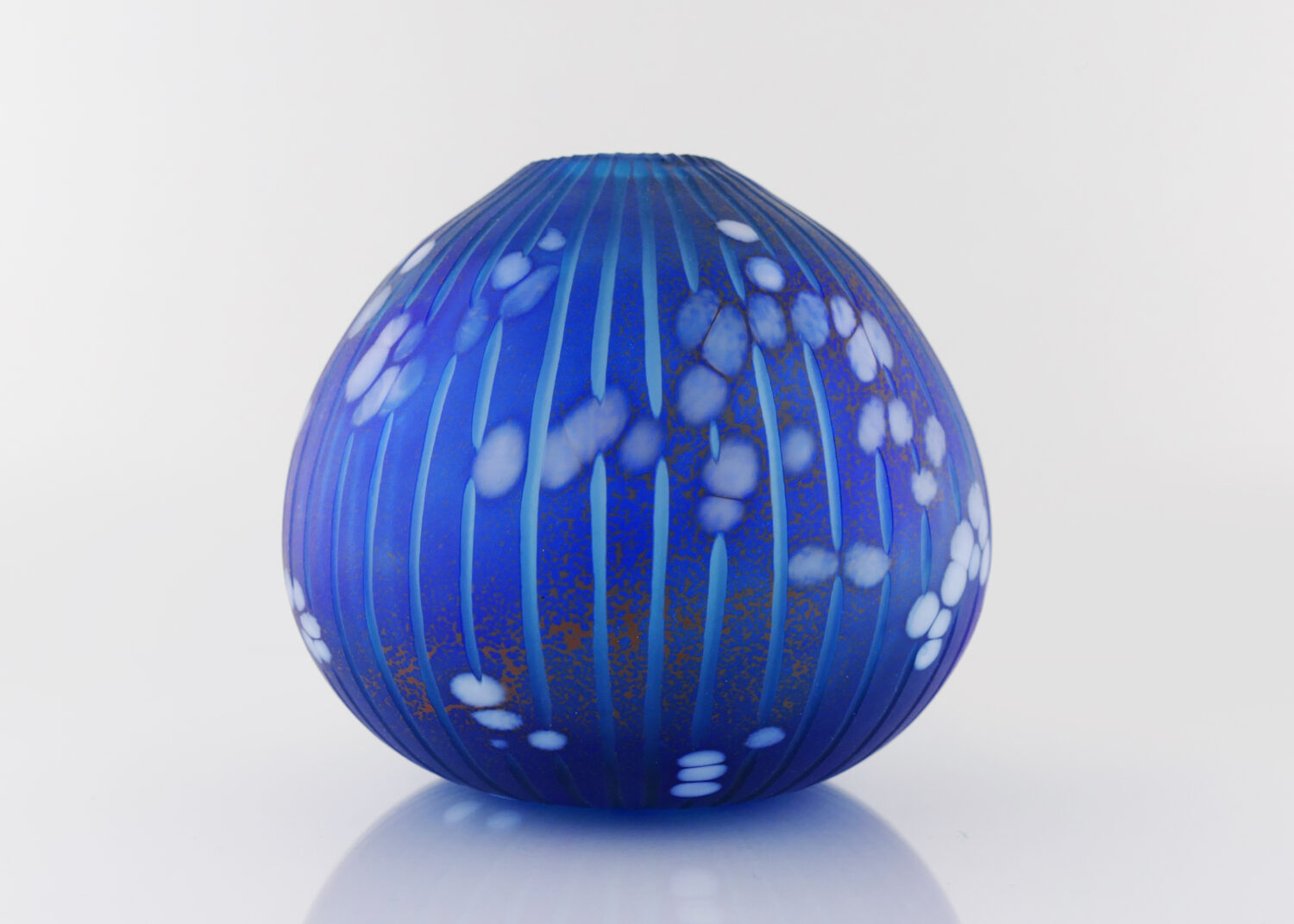 Galaxie, Vase en verre soufflé bouche, formé à main levée, Bleue, Ocre et Blanc, Effet Satiné
