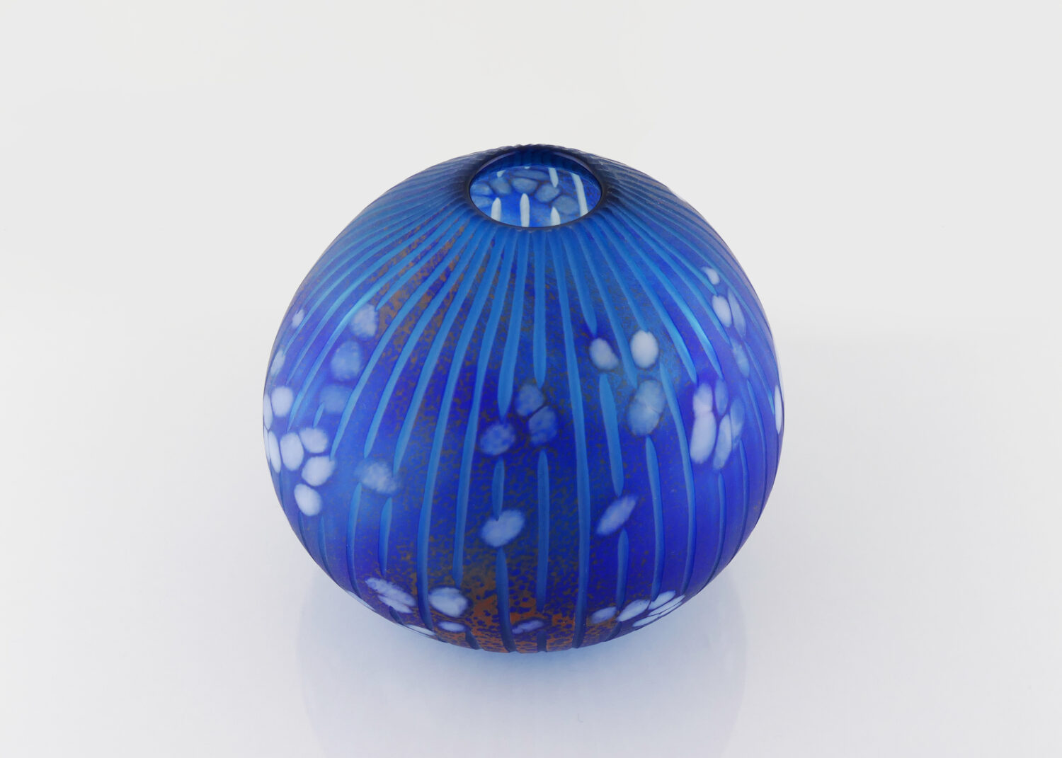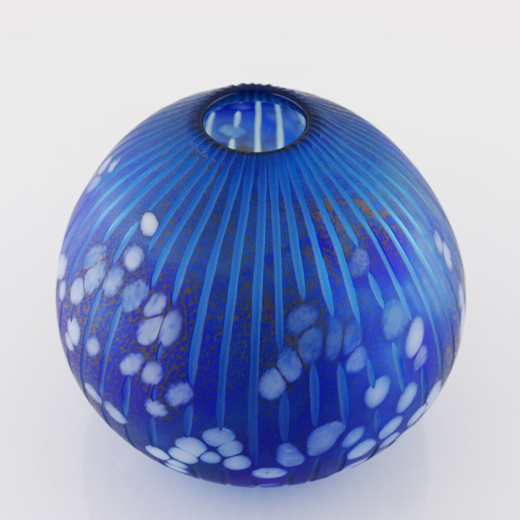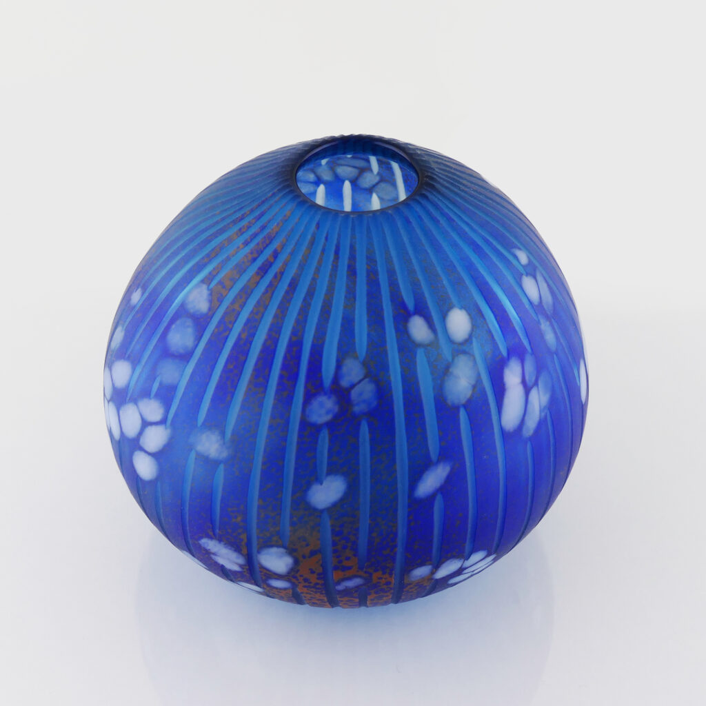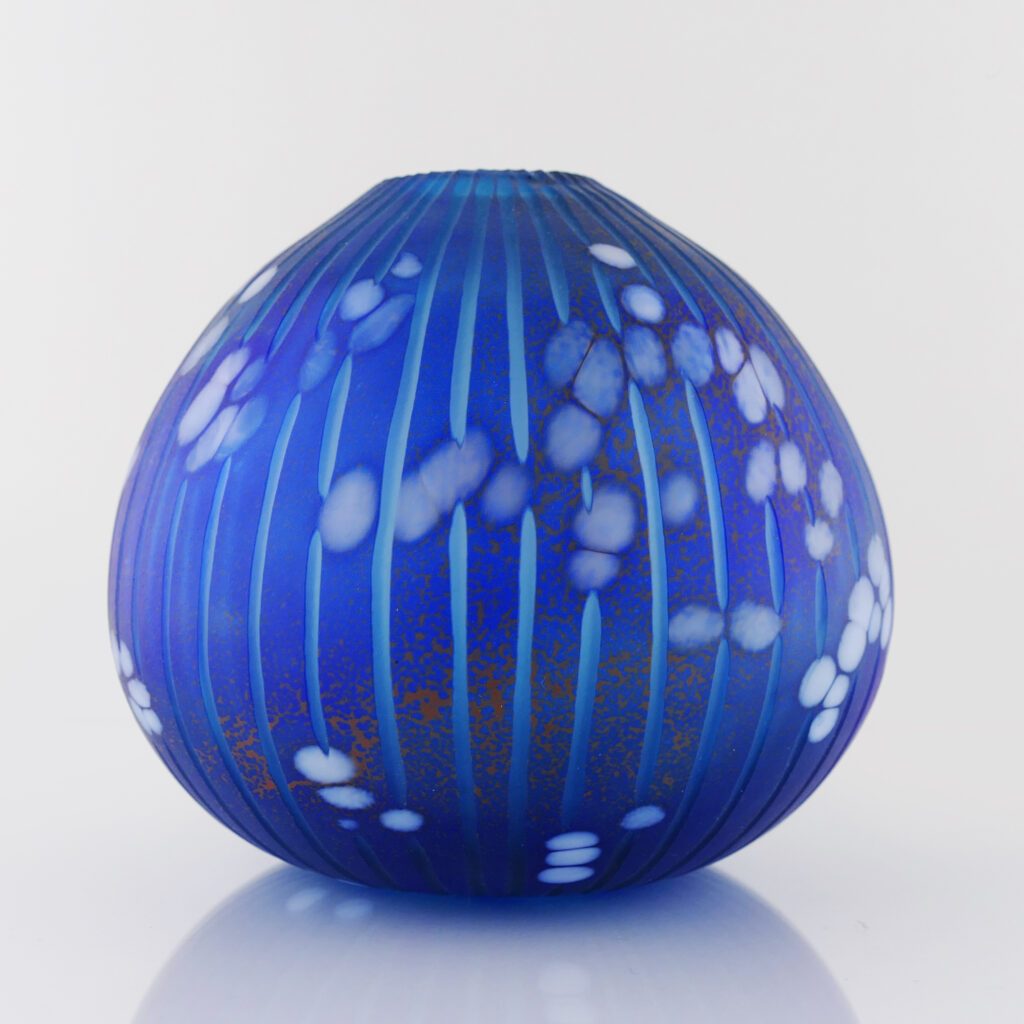 Galaxie, Vase en verre soufflé bouche, formé à main levée, Bleue, Ocre et Blanc, Effet Satiné