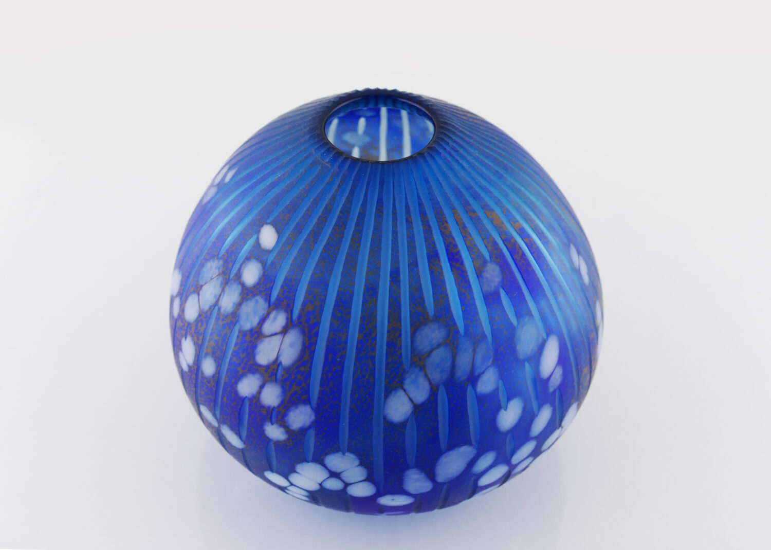 Translucide, Vase en verre soufflé bouche, formé à main levée Bleu Nuit, Effet frémissement marin