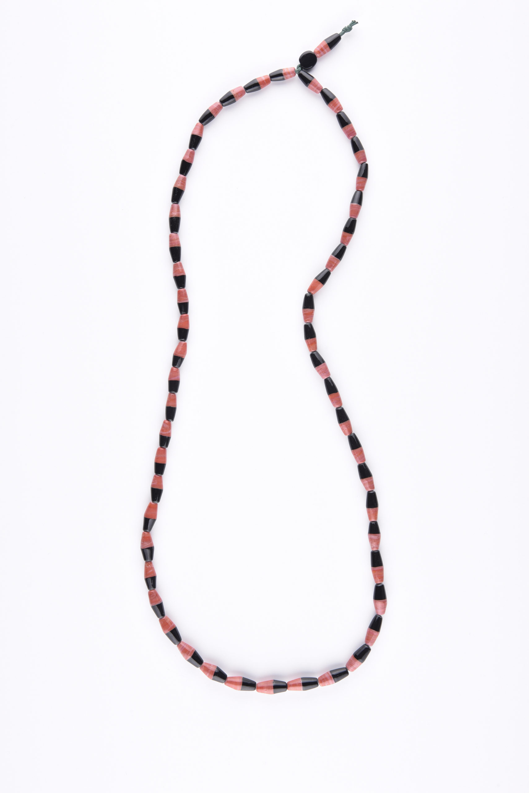 Sautoir perles en Cristal de Murano Losange bicolore couleur Framboise et Noire