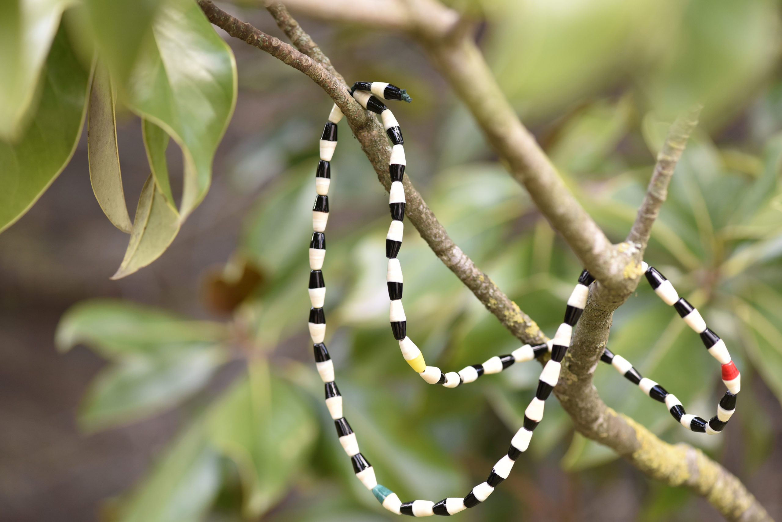 Collier perles rondes en Cristal de Murano Noire décors peigné Blanc