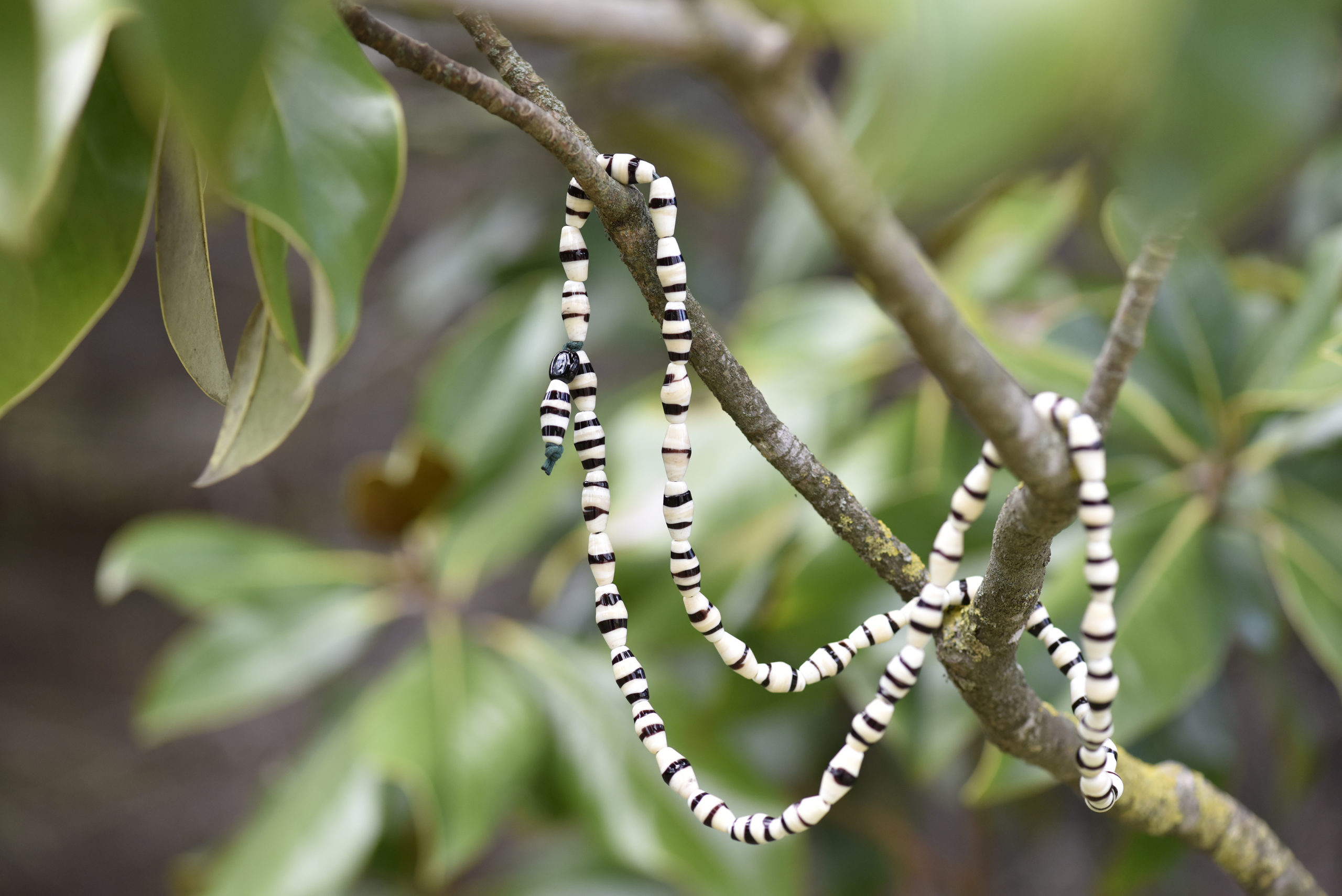 Collier perles rondes en Cristal de Murano Noire décors peigné Blanc