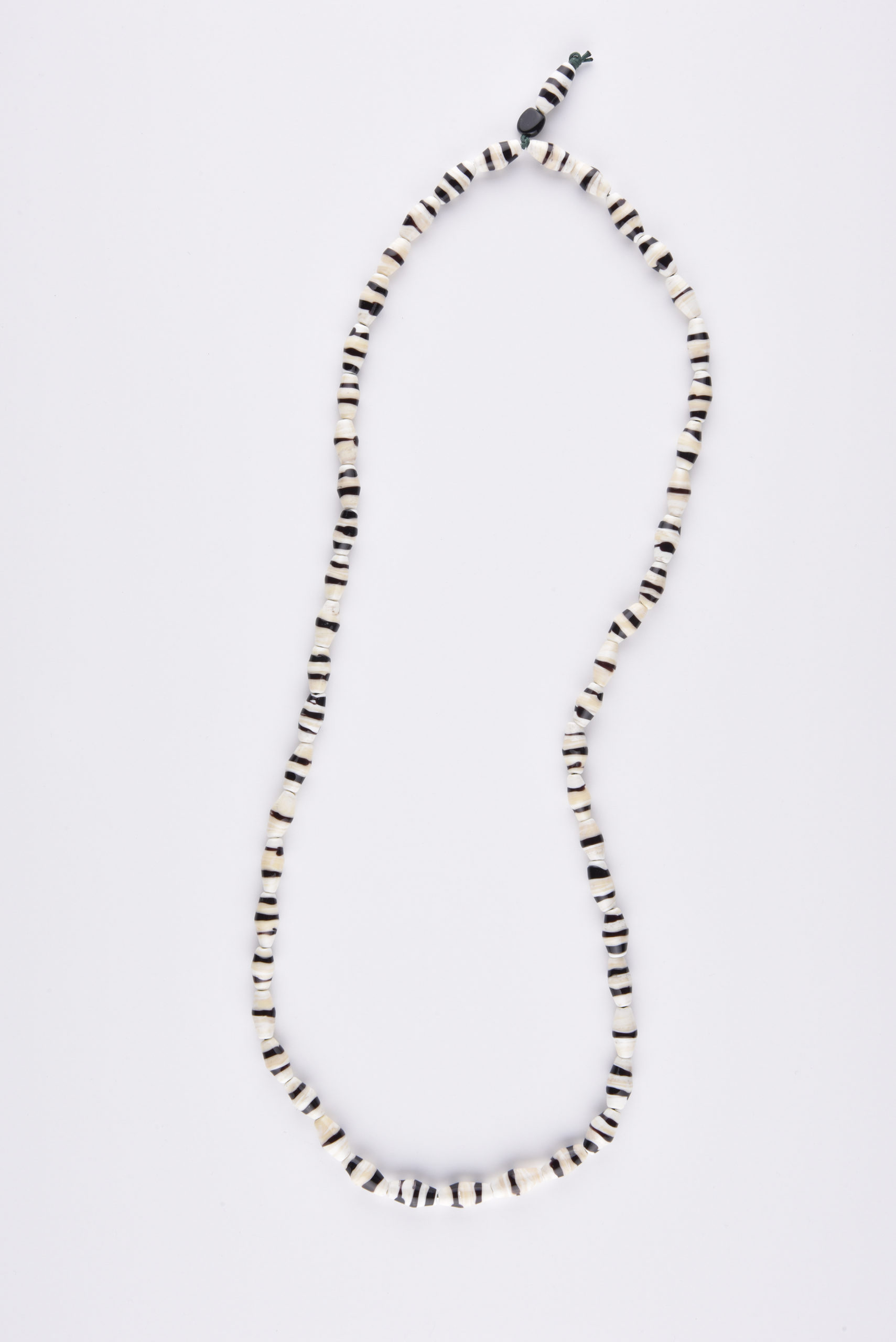 Collier perles rondes en Cristal de Murano Blanche décors peigné Noir
