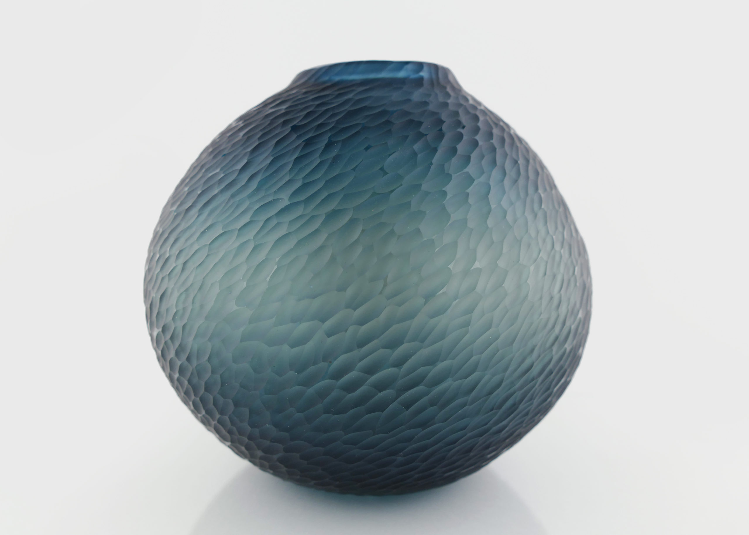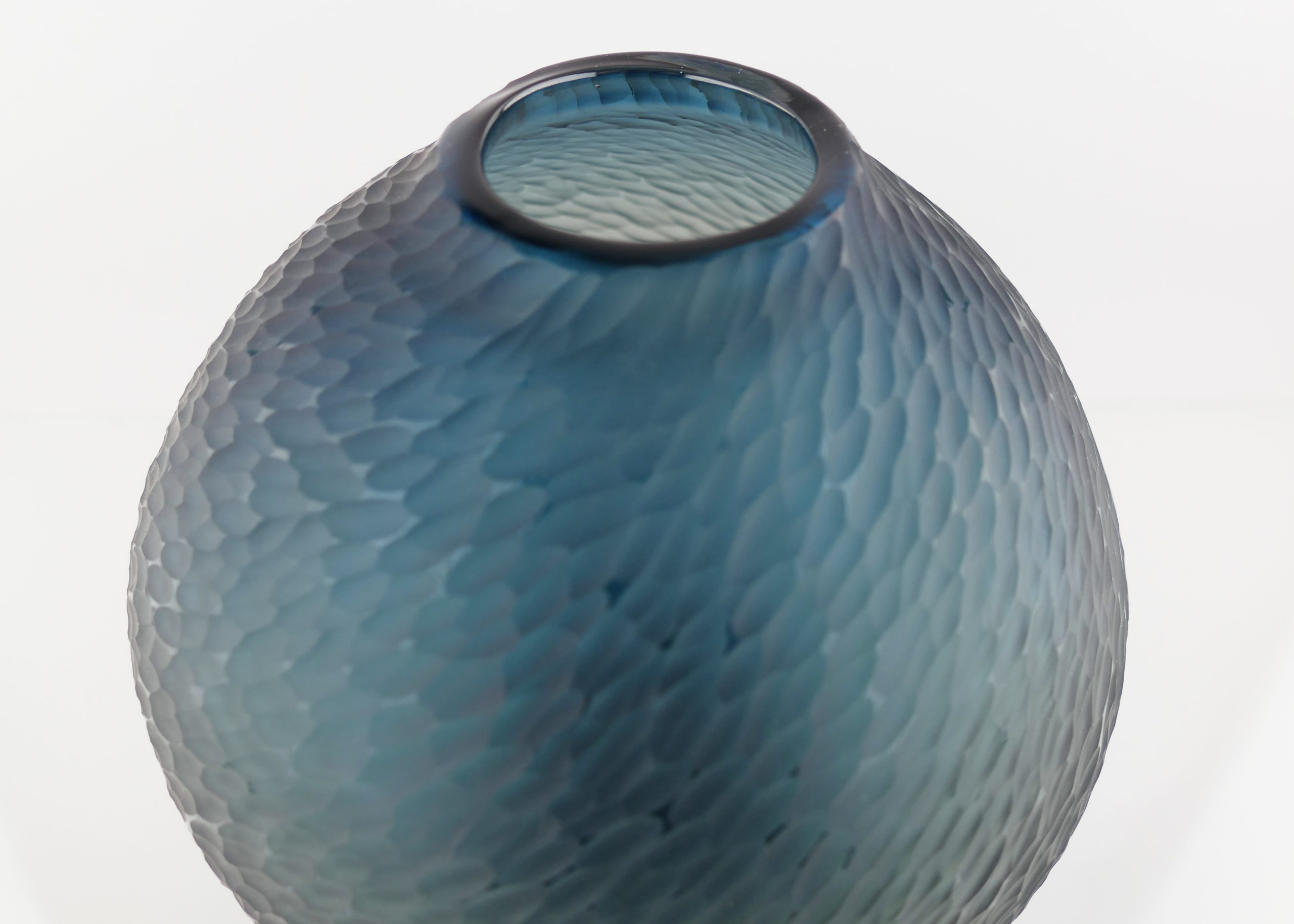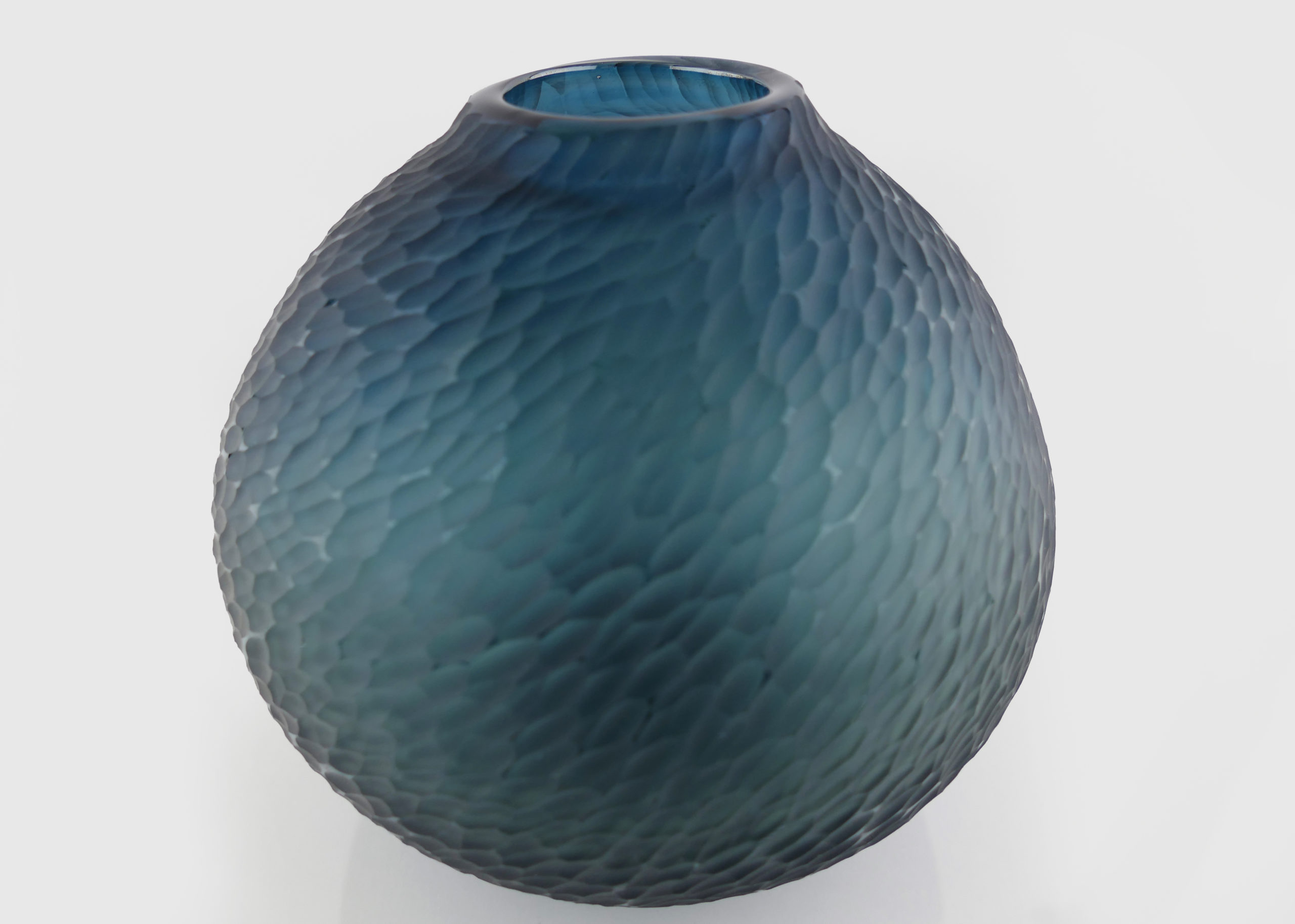 Pièce unique Translucide en verre soufflé bouche, formée à main levée de couleur Bleue Océan, sculptée dans la masse au diamant.