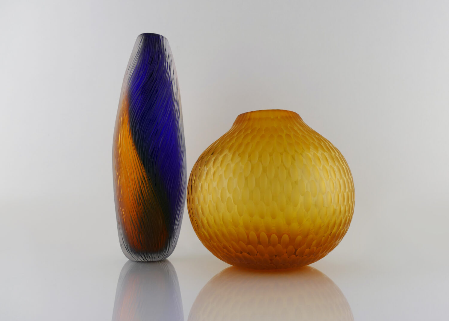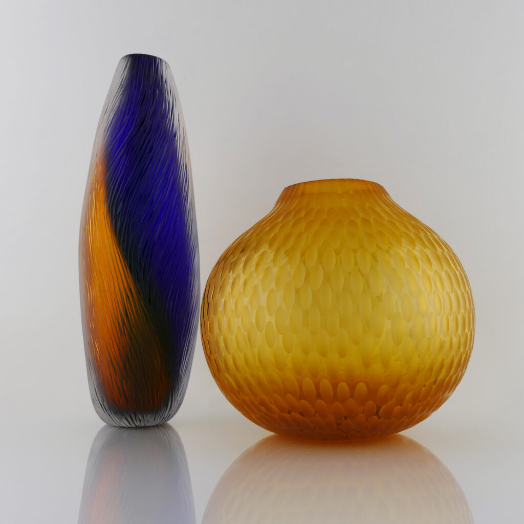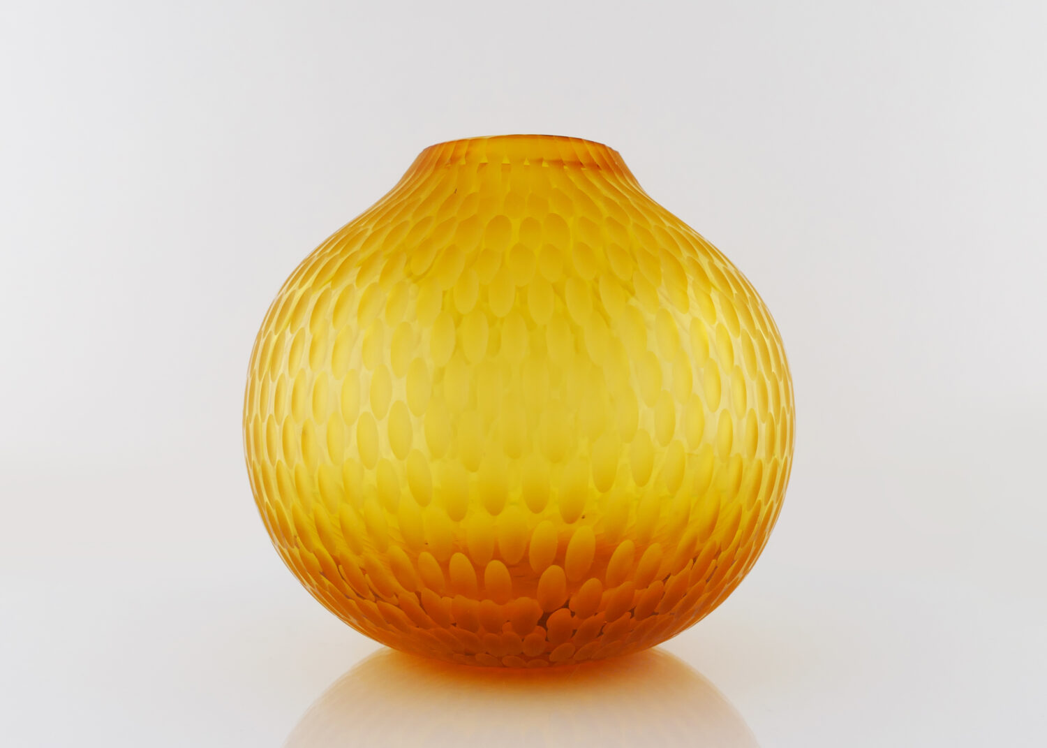 Pièce unique "Translucide" en verre soufflé bouche , formé à main levée, de couleur Jaune Doré. Sculptée dans la masse au diamant.