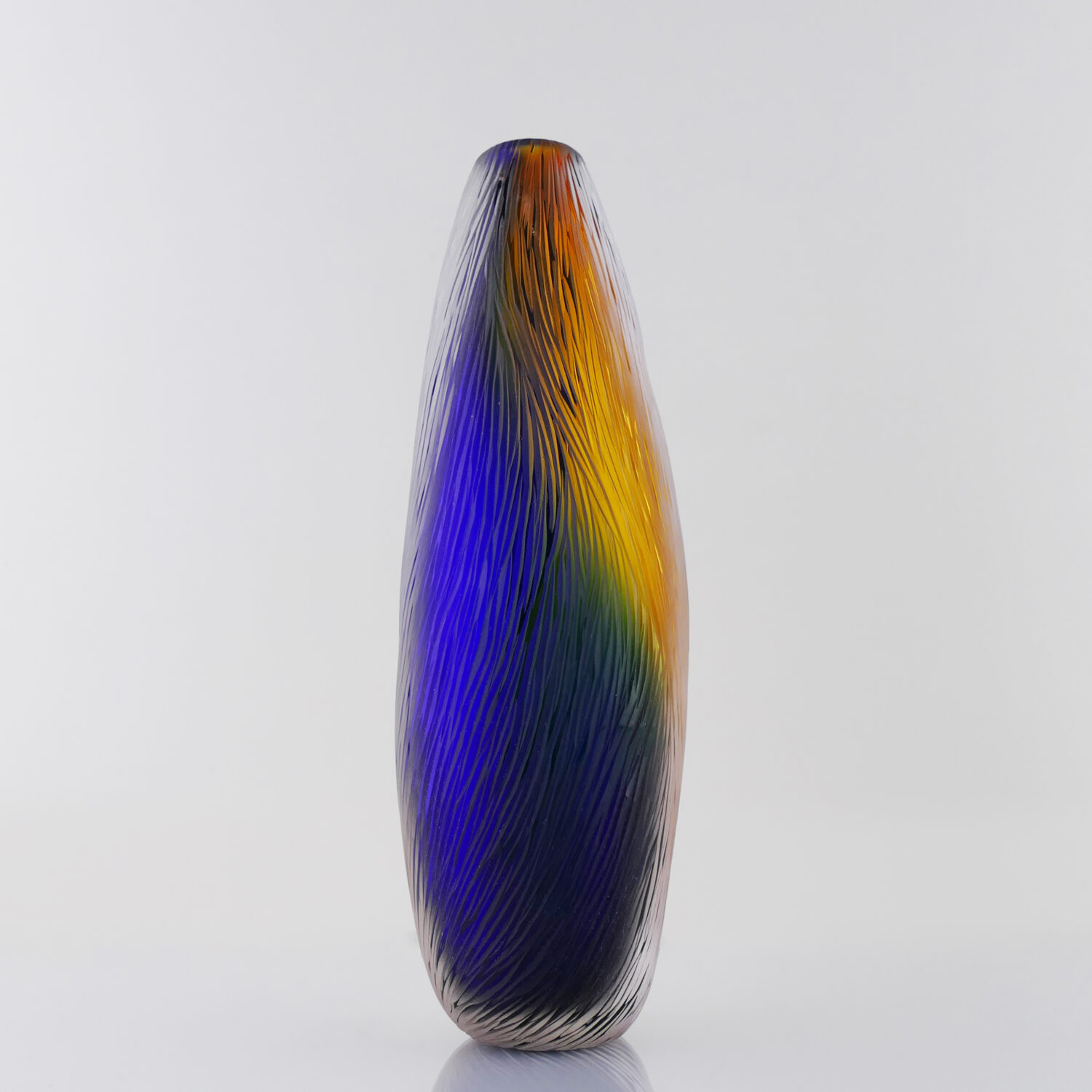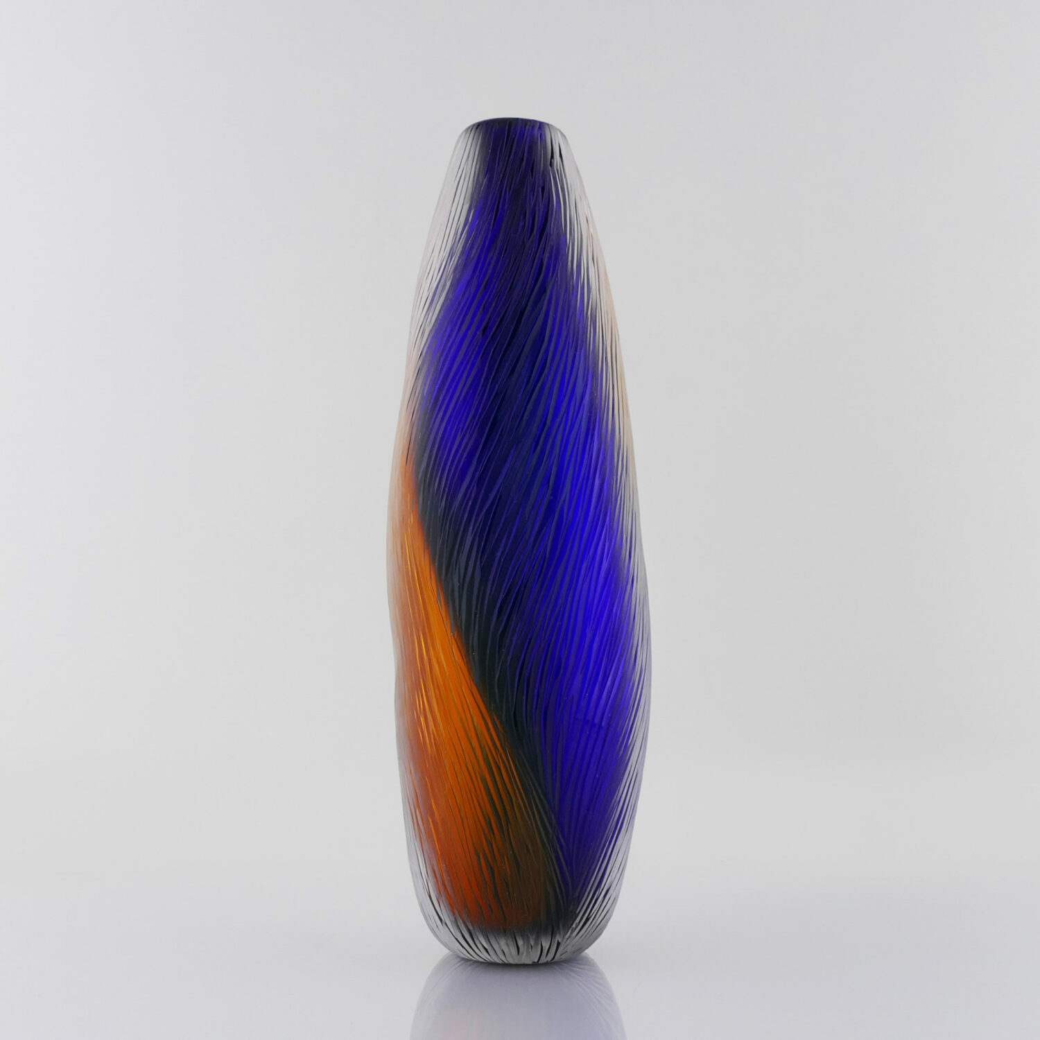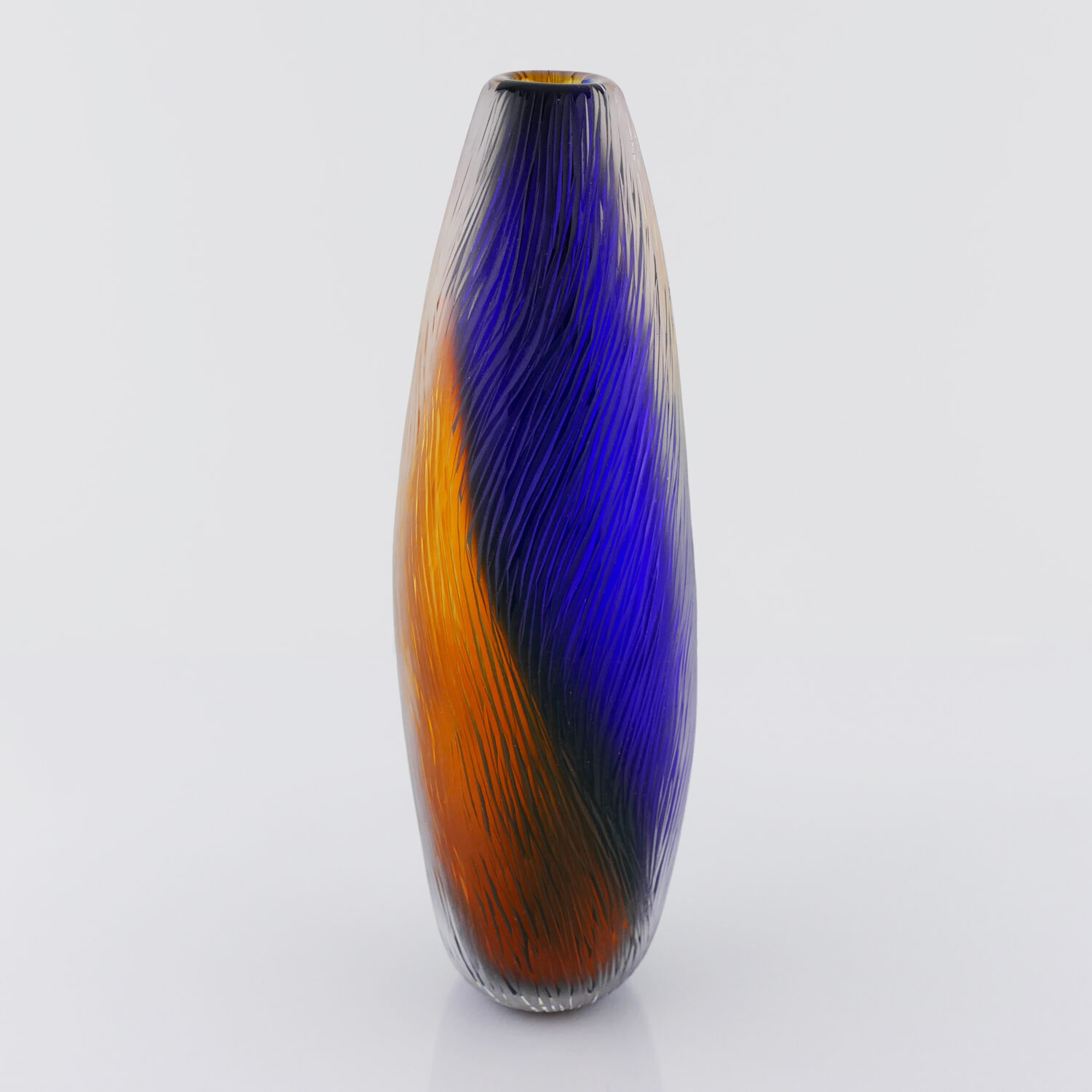 Translucide Horizon, Vase en verre soufflé bouche, formé à main levée Bleu cobalt, Effets Translucide et Tranparent