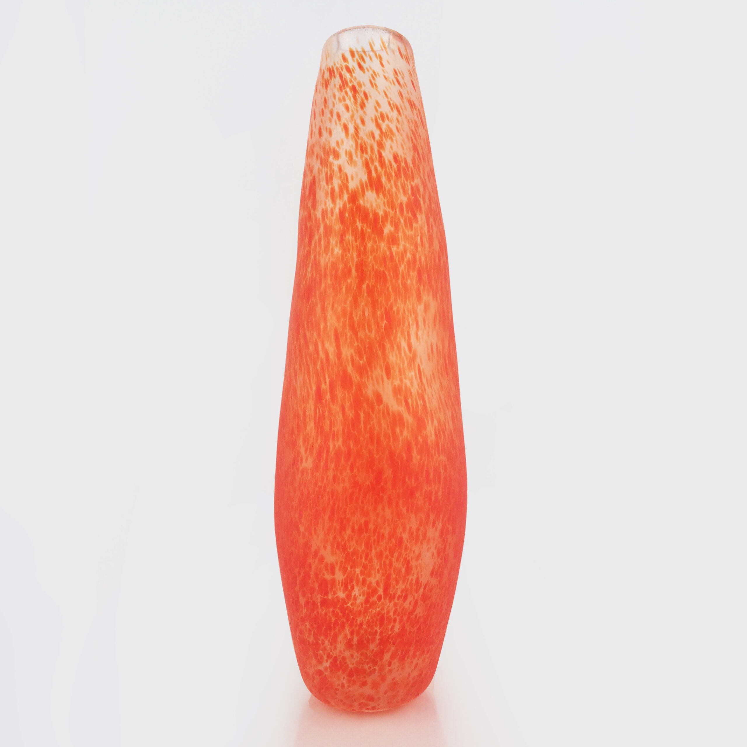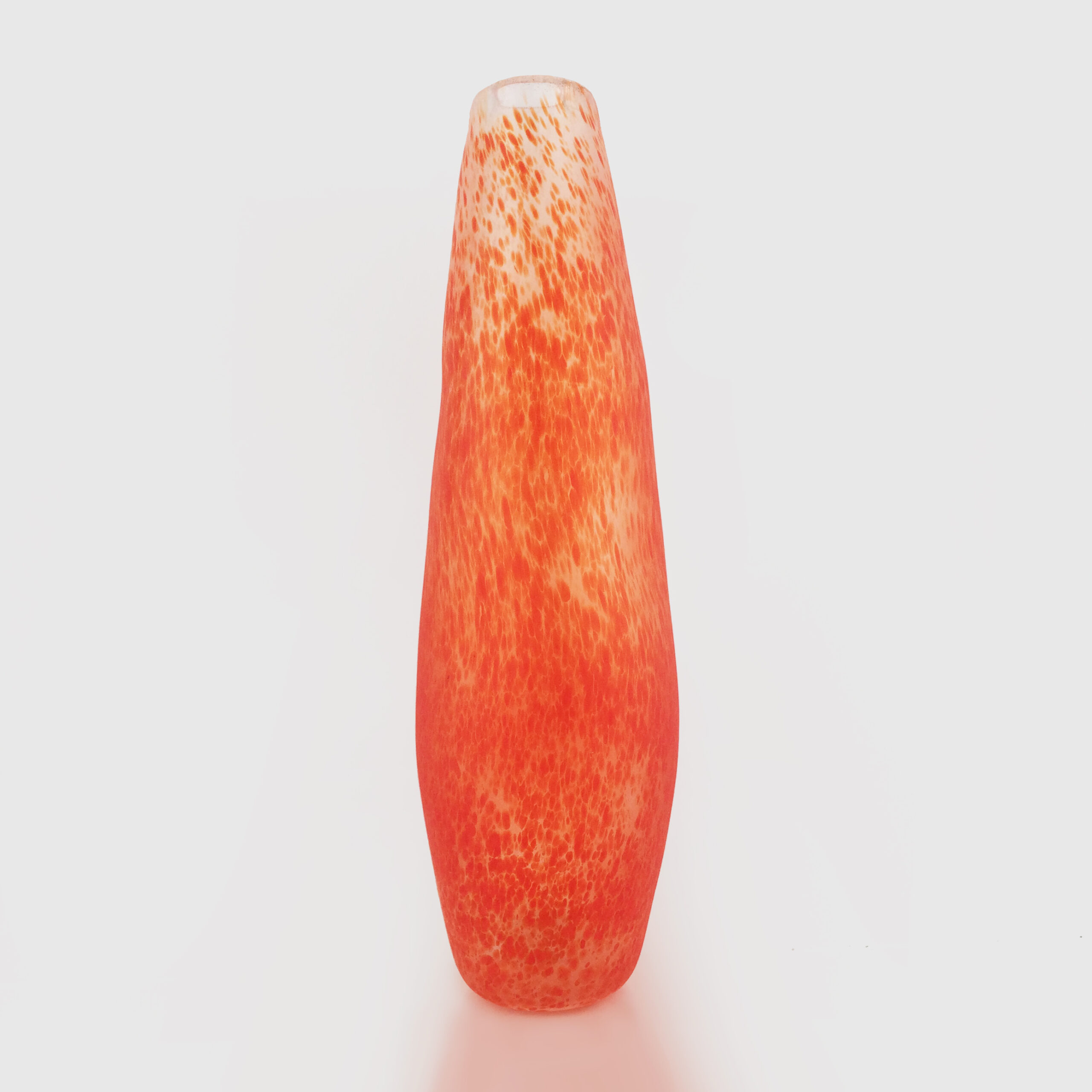 Vase Termite en verre soufflé bouche, formé à main levée Blanc, Moucheté Rouge, Effet satiné