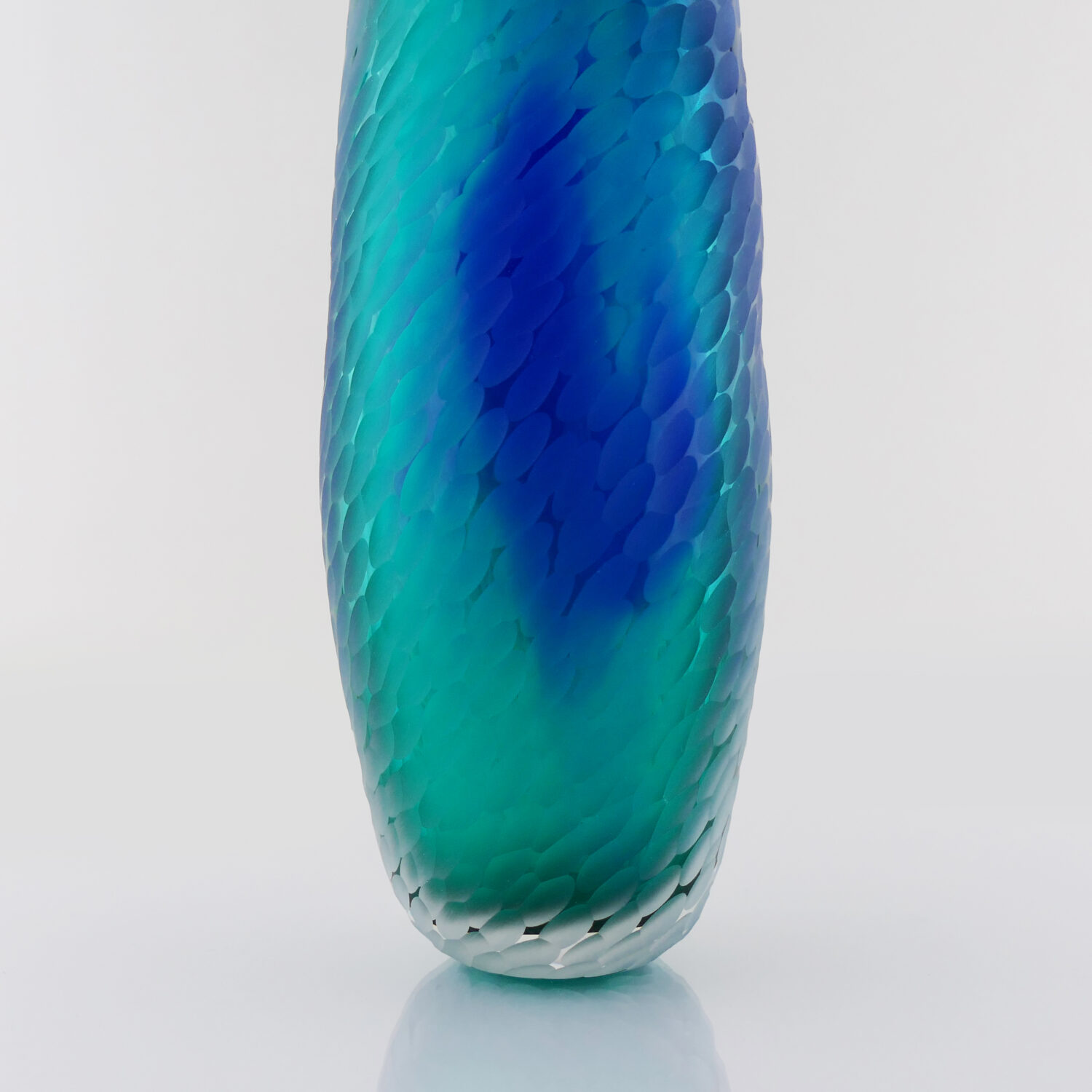 Translucide, Vase en verre soufflé bouche, formé à main levée Bleu Océan, Effet écaille satiné