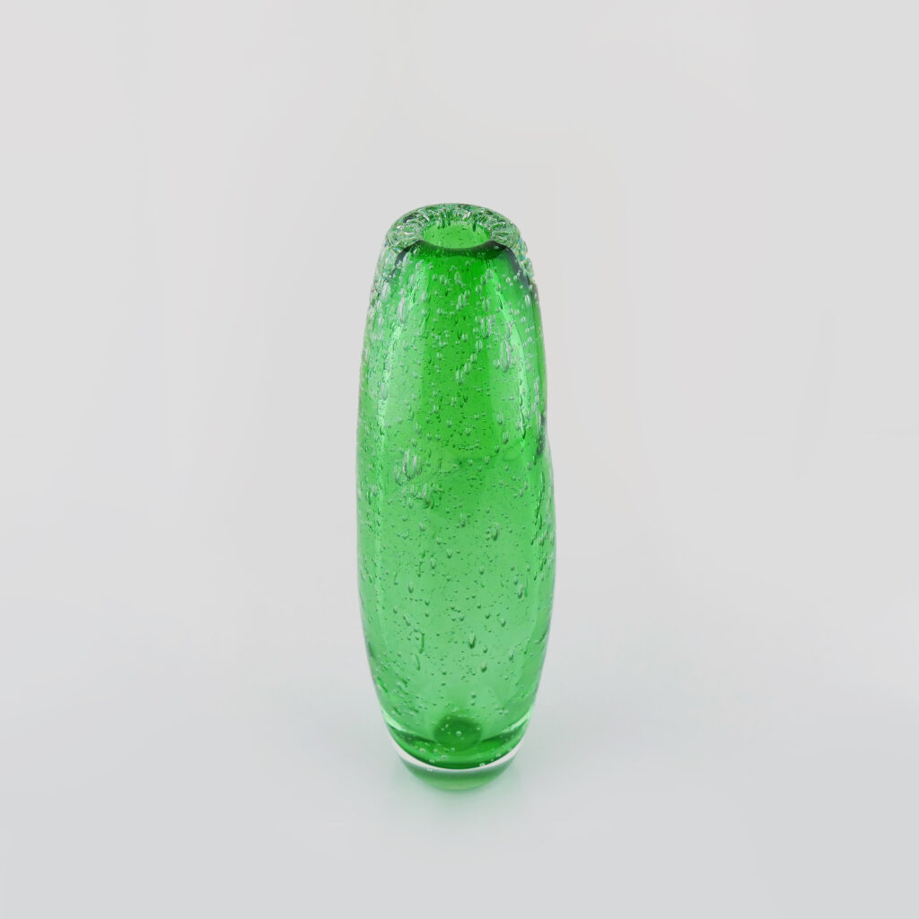Vase Termite « Mini Bulles » en verre soufflé bouche, formé à main levée, Vert Prairie. Effet Transparent et Pétillant
